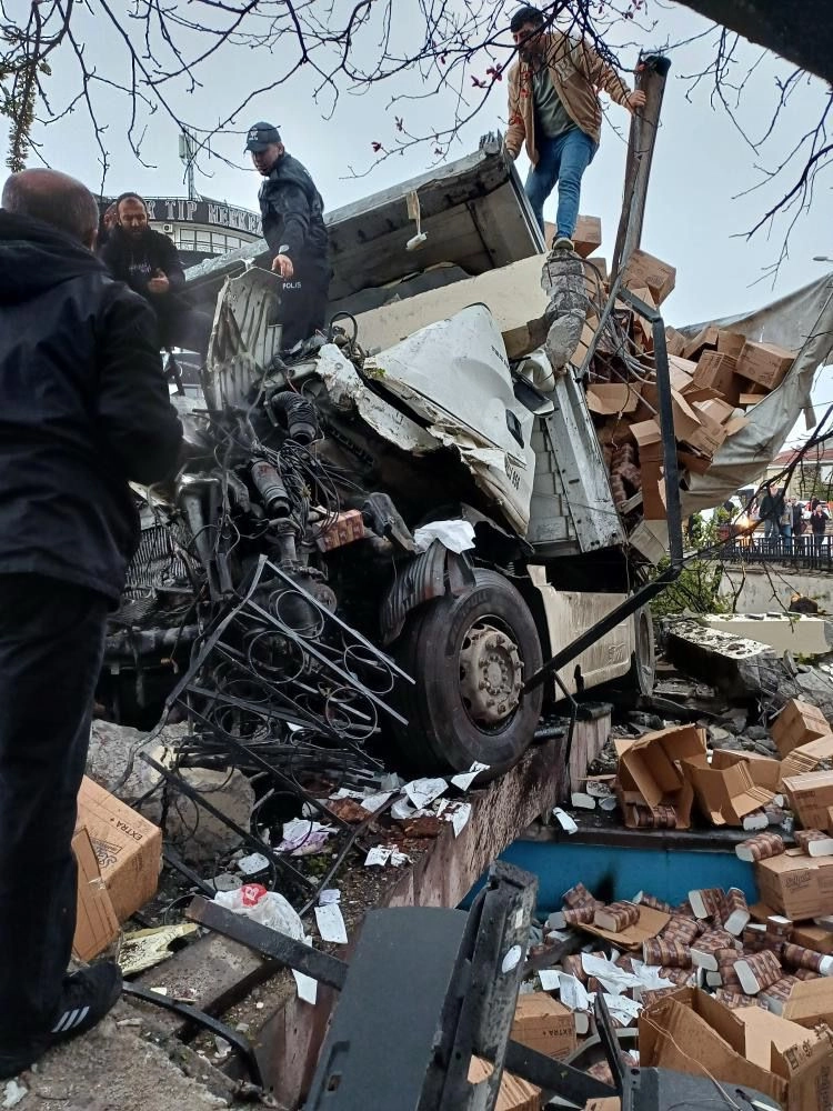 Kadircan GÜLER- Mehmet Gökhan HAKBİLİR/ ANKARA, (DHA)- ANKARA'nın Altındağ ilçesinde, kontrolden çıkarak parkın duvarına çarpan TIR’ın şoförü yaşamını yitirdi.Kaza, akşam saatlerinde Bostancık Caddesi Türk Dünyası Vezir Tonyukuk Parkı mevkisinde meydana geldi. T.B. (55) yönetimindeki 06 BCJ 956 plakalı TIR, yağış nedeniyle kayganlaşan yolda sürücüsünün kontrolünden çıktı. TIR şoförü, otobüs durağında bulunan yayalara çarpmamak manevra yaptı. TIR, parkın duvarlarını ve heykel sütunları yıktı. Çevredekilerin ihbarı üzerine bölgeye polis, sağlık ve itfaiye ekipleri sevk edildi. Sağlık ekiplerince yapılan kontrolde TIR şoförü T.B.'nin yaşamını yitirdiği belirlendi. Şoförün cansız bedeni, kaza yerindeki incelemenin ardından morga götürüldü.Kazayla ilgili soruşturma başlatıldı. (DHA)