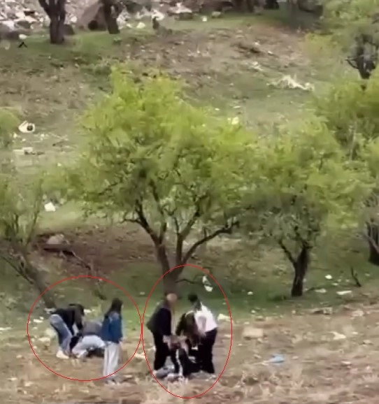Tekin YALÇINKAYA/ ELAZIĞ, (DHA)- ELAZIĞ’da bir grup genç kızın tekmeli yumruklu kavgası cep telefonu kamerası ile kaydedildi.Elazığ’da Çatalçeşme Mahallesi’nde boş bir arazite bir araya gelen bir grup genç kız, bilinmeyen nedenle kavga etti. Tekme ve yumruklarla birbirlerine saldıran genç kızları çevrede toplanan arkadaşları ayırdı. Cep telefonu kamerasıyla kaydedilen kavga anları, sosyal medyada paylaşıldı. (DHA)