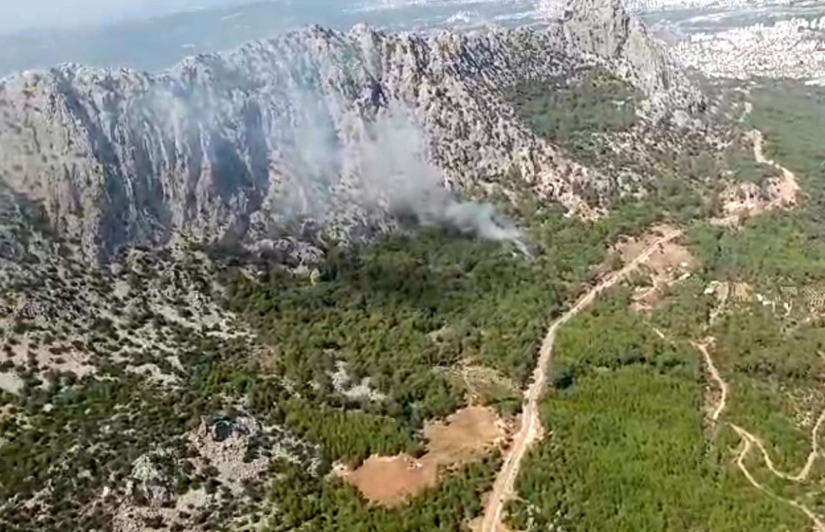 ANTALYA, (DHA)- ANTALYA'nın Konyaaltı ilçesindeki dağlık bölgede orman yangını çıktı. Bölgeye sevk edilen ekipler, havadan ve karadan müdahale ediyor.Konyaaltı Sarısu Mahallesi'ndeki ormanda, saat 15.00 sıralarında henüz belirlenemeyen nedenle yangın çıktı. İhbar üzerine bölgeye Orman Bölge Müdürlüğü ve itfaiye ekipleri sevk edildi. Yangına 3 uçak, 2 helikopter, 5 arazöz, 2 su ikmal aracı ve çok sayıda yangın söndürme işçisi ile müdahale ediliyor. (DHA)