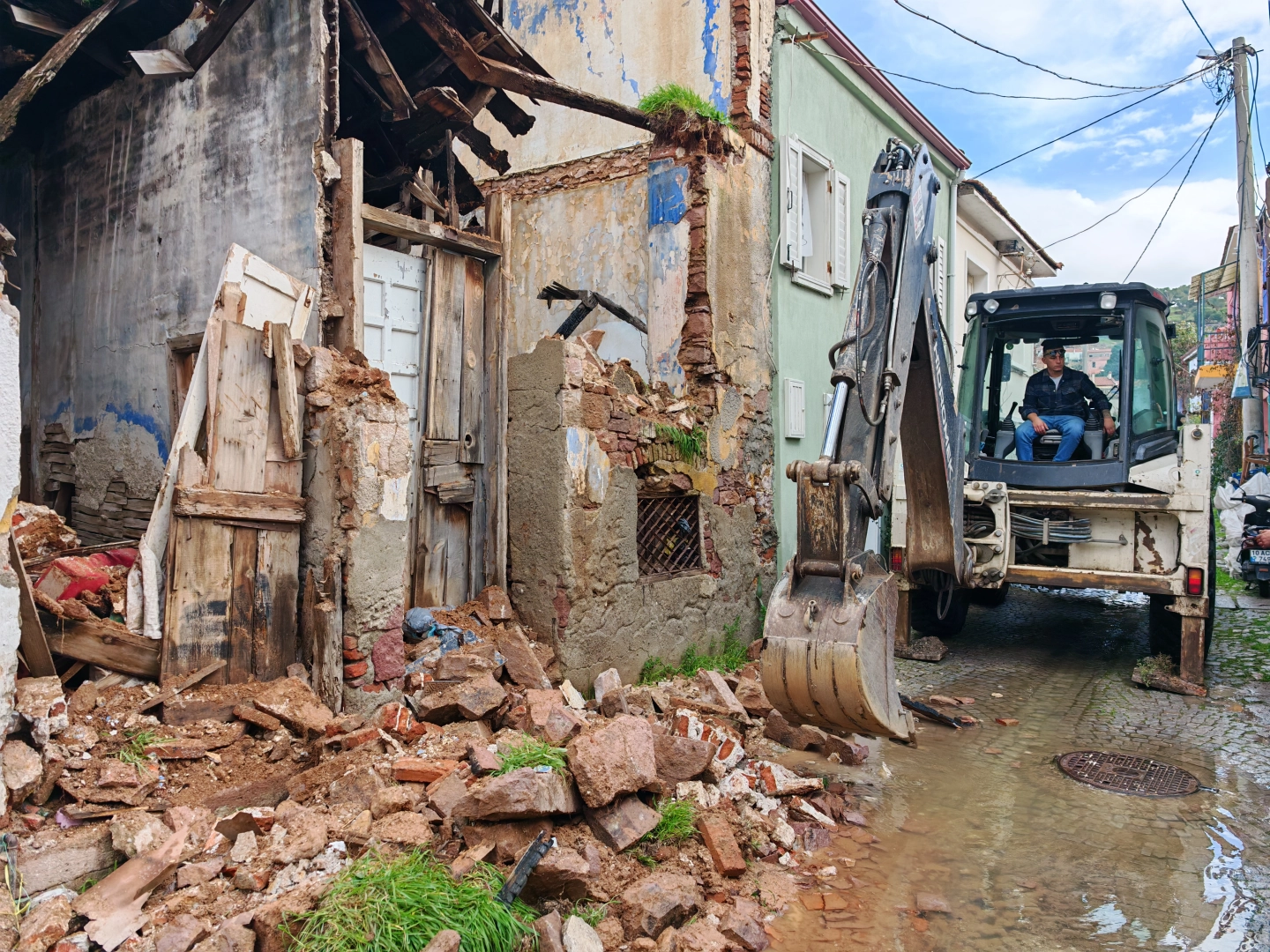 Ayvalık'ta dün etkili olan sağanak yağış, gece saatlerinde şiddetini artırarak kentte su baskınlarına ve çökmelere neden oldu. İlçede metre kareye 58,7 kilogram yağış düştüğü öğrenilirken, yağış nedeniyle 40 ayrı noktada su baskınları meydana geldi. İtfaiye ve BASKİ ekipleri yaşanan aksaklıkları gidermek için yoğun mesai harcadı. Yağışın yol açtığı bir diğer olay ise metruk binalarda yaşanan çökmeler oldu. Zeki Bey Mahallesi Ali Rıza Efendi Sokağı'nda metruk haldeki 2 katlı bir yapının çatısı çöktü, ön cephesinde ise yıkılma meydana geldi. Söz konusu yapının yanındaki binada yaşayanların, tam 3 yıl önce Ayvalık Belediyesi'ne bu tehlikeyi bildiren bir dilekçe verdikleri ileri sürüldü. Benzer bir çökme olayı da Hayrettin Paşa Mahallesi 14017 Sokak’ta bulunan eski ve metruk 2 katlı yapıda yaşandı. Ekiplerin çalışması devam ediyor. (DHA)