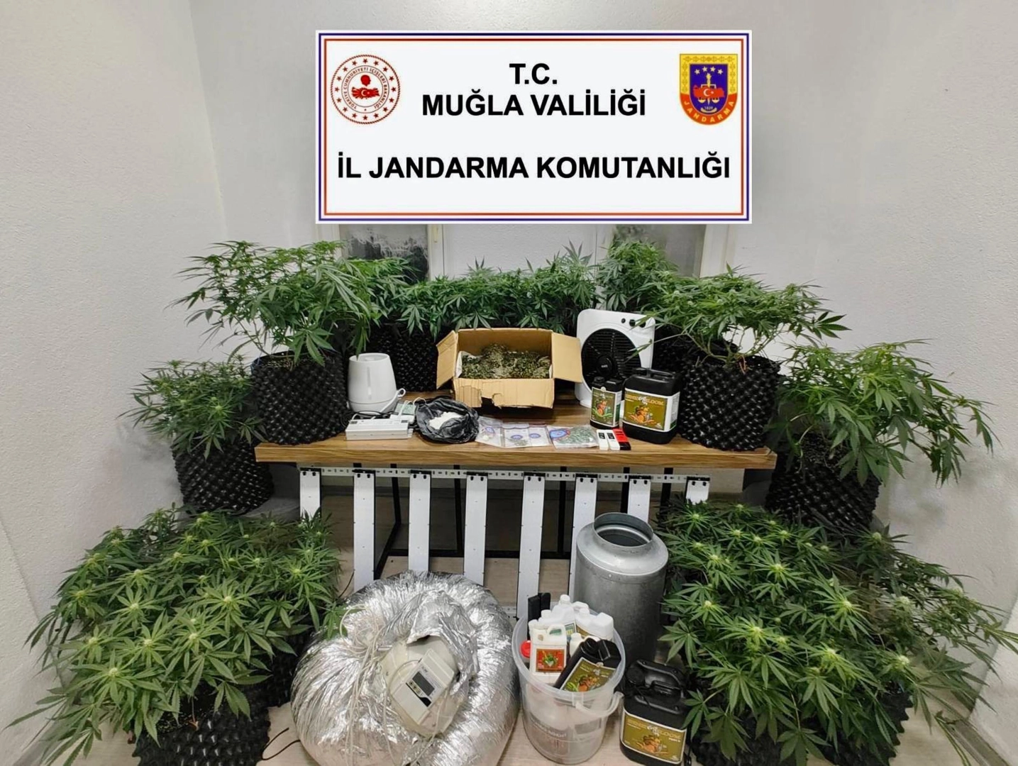 Fırat AKAY/ BODRUM (Muğla), (DHA)- MUĞLA’nın Bodrum ilçesinde, jandarma tarafından yapılan düzenlenen operasyonunda 1 kilo 100 gram likit esrar, 1 kilo 50 gram skunk ele geçirildi, 1 şüpheli tutuklandı.Bodrum İlçe Jandarma Komutanlığı ekipleri Gündoğan Mahallesi'nde uyuşturucu ticareti yapıldığı bilgisini aldı. Harekete geçen ekipler Bodrum Cumhuriyet Başsavcılığı koordinesinde U.Ş. ve D.K.’nın kaldığı eve operasyon düzenledi. Adreste yapılan aramalarda 1 kilo 100 gram likit esrar, 1 kilo 50 gram skunk, 20 kök skunk bitkisi, 65 parçadan oluşan iklimlendirme ve ışık sistemi ele geçirilirken; 2 şüpheli gözaltına alındı. İşlemleri tamamlanan şüphelilerden U.Ş. tutuklanırken, diğer şüpheli adli kontrol şartıyla serbest bırakıldı.(DHA)FOTOĞRAFLI