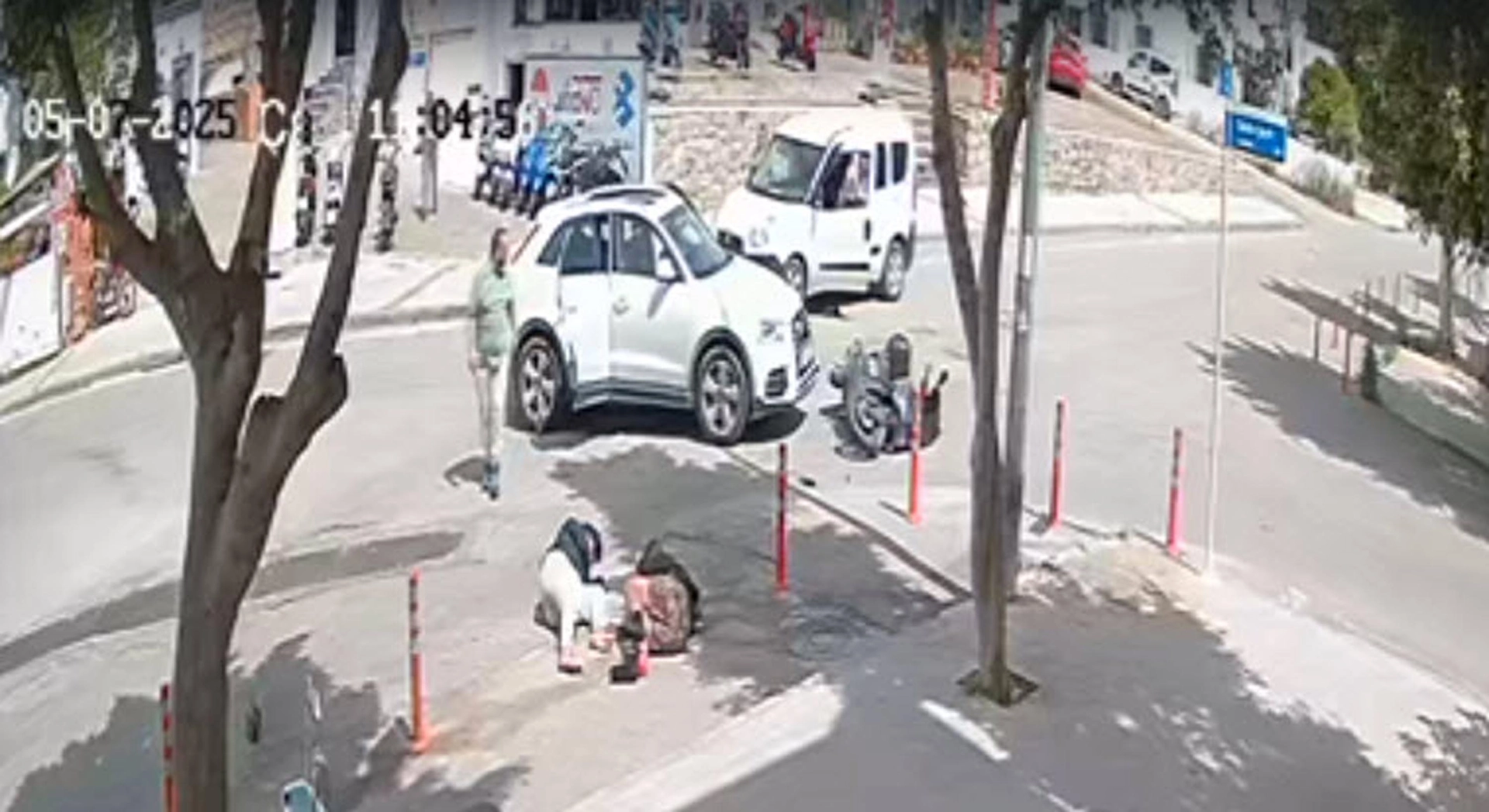 Fırat AKAY/BODRUM (Muğla), (DHA)- MUĞLA'nın Bodrum ilçesinde motosiklet ile cipin çarpıştığı kazada 2 kişi yaralandı. Kaza güvenlik kamerasına yansıdı.Kaza, saat 11.00 sıralarında Cevat Şakir Mahallesi'ndeki kavşakta meydana geldi. Hüseyin T. idaresindeki 48 AIZ 384 plakalı motosiklet ile Ceylan B.'nin kullandığı 34 GS 0090 plakalı ciple çarpıştı. Motosikletten yere savrulan Hüseyin T. ve Osman A. yaralandı. İhbarla bölgeye sağlık ve polis ekipleri sevk edildi. Sağlık ekiplerince ilk müdahalesi olay yerinde yapılan yaralılar, çevre hastanelere kaldırıldı. Yaralıların durumunun iyi olduğu öğrenildi. Kaza güvenlik kamerasına yansıdı. (DHA)FOTOĞRAFLI