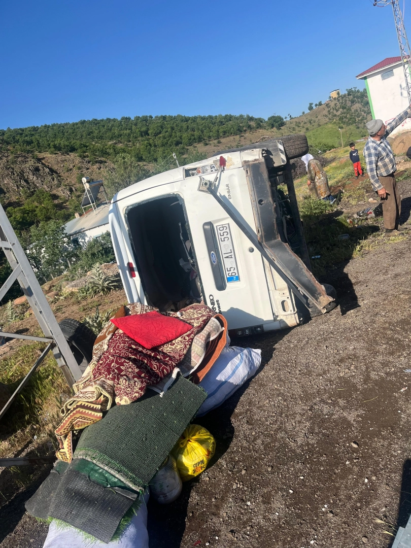 Aziz ÖNAL/ BİNGÖL, (DHA)- BİNGÖL’de demir bariyerlere çarparak devrilen hafif ticari araçtaki 1’i çocuk 5 kişi yaralandı. Yaralanan çocuğun hayati tehlikesinin bulunduğu belirtildi.Kaza, akşam saatlerinde Bingöl- Solhan karayolunun Çavuşlar köyü mevkisinde meydana geldi. V.G. yönetimindeki 65 AL 559 plakalı hafif ticari araç, sürücüsünün direksiyon kontrolünü yitirmesi sonucu demir bariyerlere çarpıp devrildi. Kazada, sürücü ile birlikte araçtaki 1’i çocuk 5 kişi yaralandı. İhbarla kaza yerine sağlık ve polis ekipleri sevk edildi. Yaralılar, ilk müdahalelerinin ardından Bingöl Devlet Hastanesi’ne kaldırıldı. Tedaviye alınan yaralılardan 7 yaşındaki E.G.’nin hayati tehlikesinin bulunduğu belirtildi. Kazaya ilişkin inceleme başlatıldı. (DHA)