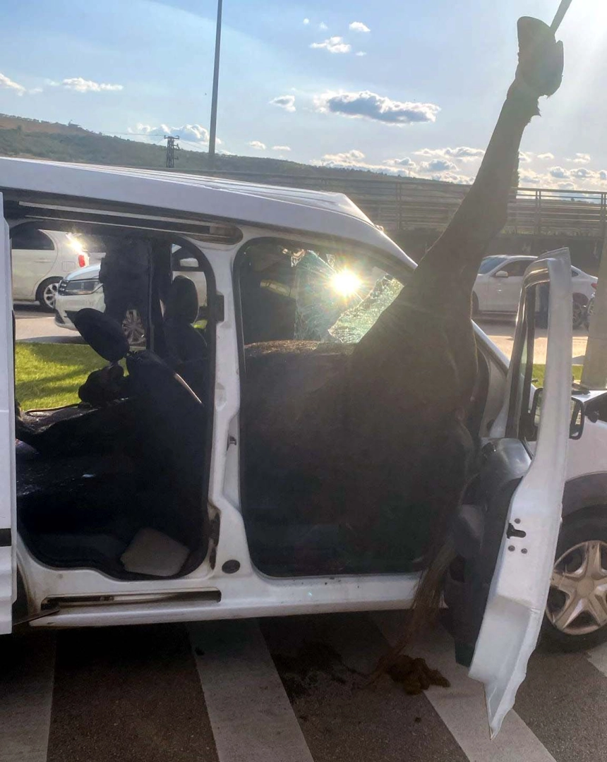 Ahmet ATMACA/ GAZİANTEP, (DHA)- GAZİANTEP’te, hareket halindeki sivil polis aracına, yola fırlayan başıboş ata çarptı. Ön camdan içeri giren atın öldüğü kazada 2 polis de yaralandı. Kaza, akşam saatlerinde havaalanı Hasan Kalyoncu Üniversitesi Kavşağında meydana geldi. İddiaya göre, seyir halindeki 27 AOU 719 plakalı sivil polis aracı, aniden yola fırlayan başıboş ata çarptı. Çarpmanın etkisiyle at polis aracının ön camından içeri girdi. Aldığı darbe ile at ölürken kazada polis memurları Sefa A. ve Ersin B. yaralandı. Polis memurları, çağrılan sağlık ekipleri tarafından ilk müdahalenin ardından hastaneye sevk edildi. Yaralılardan Sefa A.’nın durumunun ağır olduğu öğrenildi. Ölen at araçtan vinç yardımıyla çıkarılırken, kazayla ilgili inceleme sürüyor.