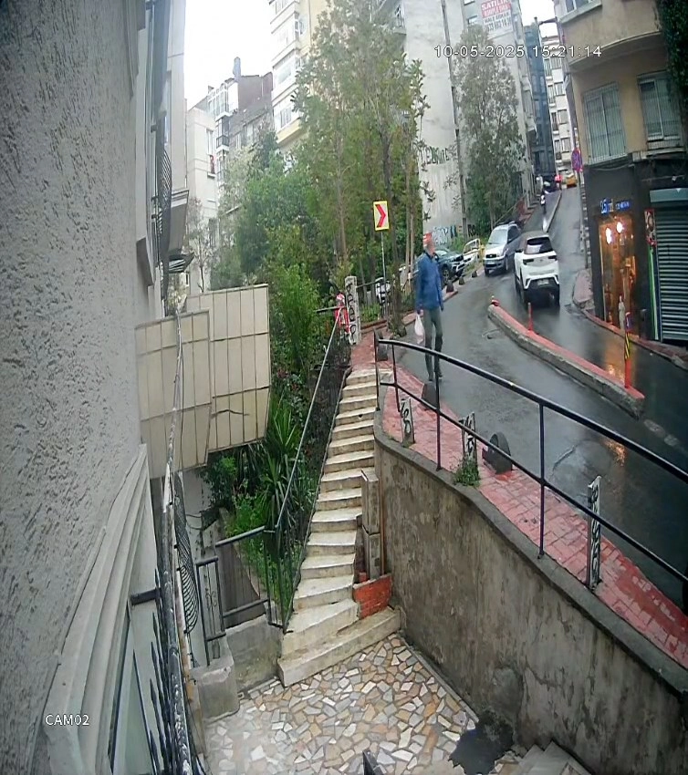 Hasan YILDIRIM-Doğan Can CESUR/İSTANBUL,(DHA)- BEYOĞLU’nda yağmur nedeniyle kayganlaşan yolda sürücüsünün direksiyon hakimiyetini kaybettiği otomobil refüje çarparak takla attı. Kaldırımda yürüyen yayanın ölümden saniyelerle kurtulduğu kaza anı güvenlik kamerası tarafından kaydedildi.Kaza, 10 Mayıs Pazartesi günü saat 15.15 sıralarında Pürtelaş Hasan Efendi Mahallesi Akyol Sokak'ta meydana geldi. Edinilen bilgiye göre, karşı yönden gelen otomobilden kaçmak için manevra yapan Necmi S., refüje çarparak takla attı. Sürücü, kazadan yara almadan kurtulurken, kaldırımda yürüyen yaya ise otomobilin altında kalmaktan son anda kurtuldu.ARACIN TAKLA ATTIĞI ANLAR KAMERADA Kaza anı bir apartmanın güvenlik kamerası tarafından kaydedildi. Görüntülerde, yokuştan inen sürücü, karşı yönden gelen araçtan kaçmak için manevra yapıyor. O sırada aracının direksiyon hakimiyetini kaybeden sürücü refüje çarparak takla atıyor. Kaldırımda yürüyen kişi ise kazadan son anda kurtuluyor.Aracın altında kalmaktan son anda kurtulan yayanın yaşadığı korku kameralara yansıyor. Kaza yapan sürücü ise çevredekilerin yardımıyla otomobilden çıkarılıyor.Kaza sonra polis ekiplerinin inceleme başlatırken, otomobil daha sonra olay yerinden kaldırıldı.(DHA)