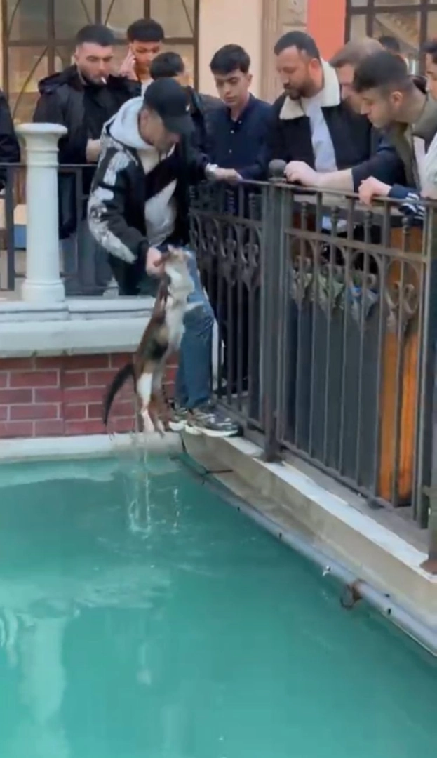 Baran AKKAYA-Emin YEŞİL/İSTANBUL,(DHA)-GAZİOSMANPAŞA’da alışveriş merkezinin süs havuzuna düşerek mahsur kalan kedi, çevredeki kişiler tarafından kurtarıldı. O anlar cep telefonu kamerasıyla kaydedildi.
