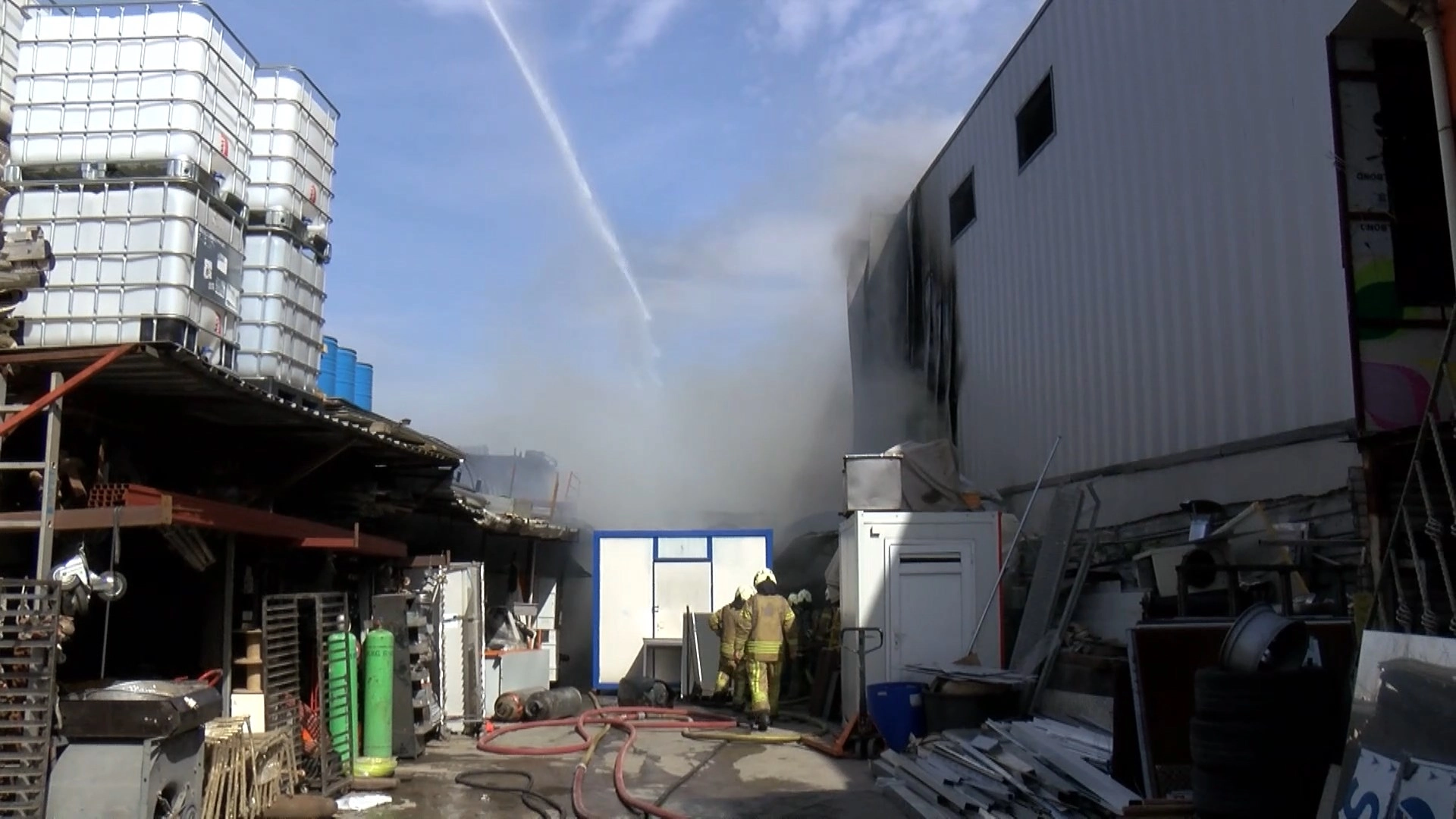 İsa ALMAÇAYIR/İSTANBUL,(DHA)- ÜMRANİYE’de hurda alım satımı yapan bir iş yerinde henüz bilinmeyen bir nedenle yangın çıktı.Alevler iş yerinin bitişiğinde bulunan geri dönüşüm deposuna sıçradı. İş yerinde ve depoda maddi hasar meydana gelirken, yangın itfaiye ekiplerinin 1 saatlik çalışması sonucu söndürüldü.Yangın saat 11:55 sıralarında Ümraniye Esenkent mahallesi Batur Alp sokakta bulunan bir iş yerinde çıktı.İhbar üzerine olay yerine çok sayıda itfaiye, polis ve sağlık ekibi sevk edildi.Yangının çıkşı nedeni bilinmezken, alevler iş yerinin bitişiğinde bulunan geri dönüşüm deposuna sıçradı.İşçilerin kaldığı konteyner yangında zarar gördü.'KALDIĞIMIZ YER YANDI'Geri dönüşüm tesisinde çalışan Mehmet Ali Kaya "Yangına karşı fabrikada nedenini bilmediğimiz bir ateş yakmışlar rüzgarla birlikte bizim kaldığımız konteynerlere geldi, söndürmeye çalıştık söndüremedik. Komple işyerimiz yandı. Kaldığımız yattığımız yer yandı perişan olduk çok şükür yaralı yok" diye konuştu.Yangında ölen ya da yaralanan olmazken işyerinde maddi hasar meydana geldi.Polis yangınla ilgili inceleme başlattı. (DHA)