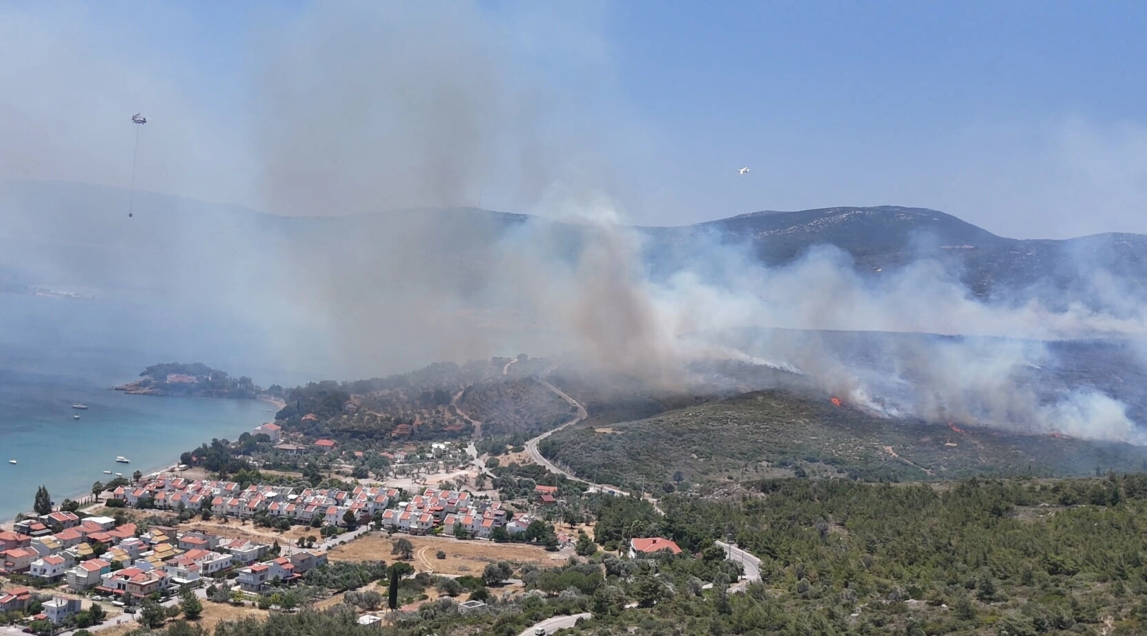 BİRİ METRUK HALDEKİ 2 EV ZARAR GÖRDÜİzmir'in Karaburun ilçesindeki orman yangınına; AFAD, Orman Bölge Müdürlüğü ve İzmir Büyükşehir Belediyesi'ne bağlı itfaiye ekiplerinin havadan ve karadan müdahale sürüyor. Arazinin dağlık olması ve kuvvetli rüzgar nedeniyle söndürme çalışmalarında güçlük yaşanıyor. Bölgedeki beton santral fabrika çalışanları ile vatandaşlar da bireysel araçları ve tankerler ile söndürme çalışmalarına destek veriyor. Jandarma, Manal Koyu çevresinde anonslarla evlerini boşaltmaları konusunda uyarıyor. Ekiplerin müdahalesiyle alevlerin yerleşim yerlerine ulaşmasının önüne geçildi. Alevler nedeniyle biri metruk 2 ev zarar gördü. Öte yandan yanan orman, havadan görüntülendi. (DHA)Kadir ÖZEN/KARABURUN (İzmir), (DHA)