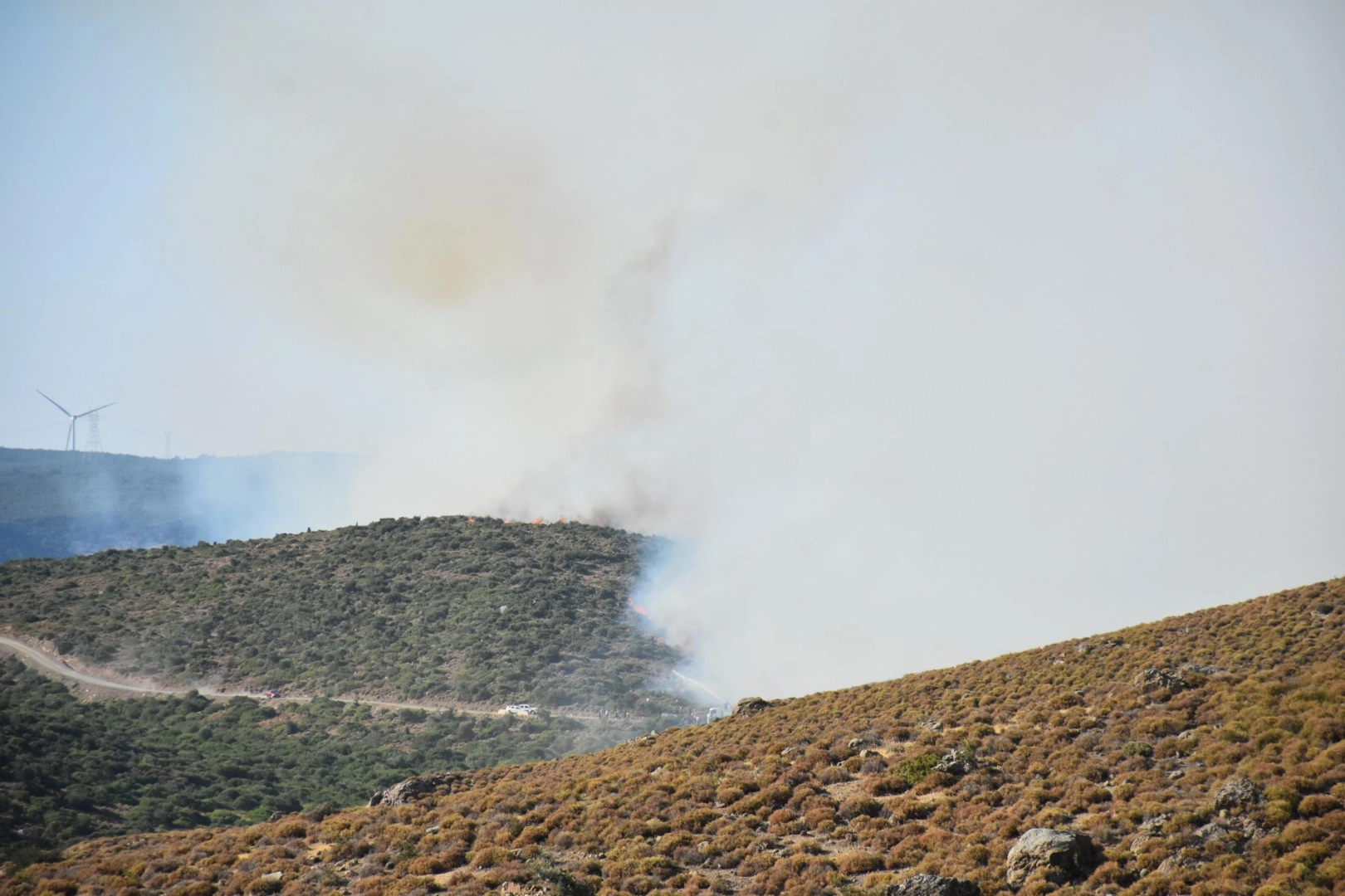 SEFERİHİSAR'DA BİR YANGIN DAHA İzmir'in Menderes ilçesinde başlayarak Seferihisar ilçesine ulaşan yangınla ilgili söndürme çalışmaları sürerken, Seferihisar'in Azmakyolu mevkisi yakınlarındaki otluk ve makilikte saat 17.00'de yangın çıktı. Bölgeye İzmir Orman Bölge Müdürlüğü'ne ait 6 helikopter, 10 arazöz, 1 su ikmal aracı sevk edildi. Alevlere havadan ve karadan müdahale başlatıldı. Kadir ÖZEN / İZMİR, (DHA)