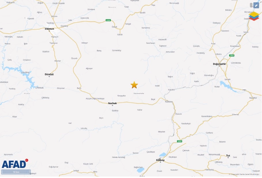 KAHRAMANMARAŞ, (DHA)- RİCHTER ölçeğine göre, Kahramanmaraş'ın Nurhak ilçesinde 4.1 büyüklüğünde deprem meydana geldi. Depremde herhangi bir olumsuzluk yaşanmadı.Afet ve Acil durum Yönetimi Başkanlığı Deprem Dairesi’nin (AFAD) verilerine göre, saat 05.04’de merkez üssü Kahramanmaraş'ın Nurhak ilçesi olan 4.1 büyüklüğünde deprem meydana geldi. Deprem yerin 6.98 kilometre derinliğinde kaydedilirken, ekiplerinin ilk incelemesinde herhangi bir olumsuzluk yaşanmadığı öğrenildi. (DHA)