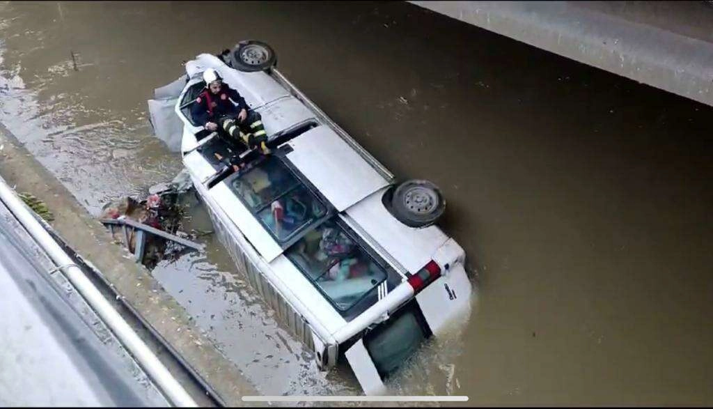Murat ÖZELCİ/KARABÜK,(DHA)-KARABÜK'te bariyerlere çarpıp, çaya devrilen minibüsün sürücüsü Süleyman A. (59), itfaiye ekiplerince kurtarılıp, hastaneye kaldırıldı. Kaza, saat 09.00 sıralarında Kılavuzlar mevkisi Kardemir Kavşağı'nda meydana geldi. Süleyman A.'nin kullandığı minibüs, kontrolden çıkıp, bariyerlere çarptıktan sonra Araç Çayı'na devrildi. Yoldan geçen sürücülerin ihbarı üzerine olay yerine polis, sağlık, AFAD ve itfaiye ekipleri sevk edildi. İtfaiye ekipleri, minibüse merdivenle ulaşarak sürücü Süleyman A.'yı sedyeyle çaydan çıkardı. Süleyman A., ambulansla Karabük Eğitim ve Araştırma Hastanesi'ne kaldırıldı. Kazayla ilgili soruşturma başlatıldı. (DHA)