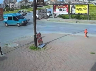 Okan ÇALIŞKAN/TARSUS (Mersin), (DHA)- MERSİN'in Tarsus ilçesinde, minibüsle çarpışıp savrulan otomobilin, kaldırımda yürürken çarptığı Hacı Karadağ (48) yaşamını yitirdi. Kaza, güvenlik kamerasına yansıdı.Kaza, dün saat 15.30 sıralarında Cumhuriyet Mahallesi Donuktaş Caddesi'nde meydana geldi. O.Y. (28) yönetimindeki 34 GM 4561 plakalı minibüs ile E.Ç.'nin (23) kullandığı 21 AEE 231 plakalı otomobil çarpıştı. Savrulan otomobil, kaldırımda yürüyen Hacı Karadağ'a çarptı. Araçla tabela arasında kalan Karadağ, yaralandı. Çevredekilerin ihbarıyla bölgeye polis ve sağlık ekipleri sevk edildi. Ambulansla hastaneye kaldırılan Karadağ, tüm müdahalelere rağmen kurtarılamadı. Karadağ'ın cansız bedeni, otopsi için morga kaldırıldı. Polis ekipleri, 2 sürücüyü de gözaltına aldı.Öte yandan kaza çevredeki bir iş yerinin güvenlik kamerasına yansıdı. Görüntülerde kazada savrulan otomobilin yayaya çarpması ve çevredekilerin yardıma koşmaları yer aldı. Ayrıca, kazadan saniyeler önce ise aynı noktadan sürücüyle yanındaki kişinin motosikletle geçtiği de görüntülerde yer aldı. (DHA)