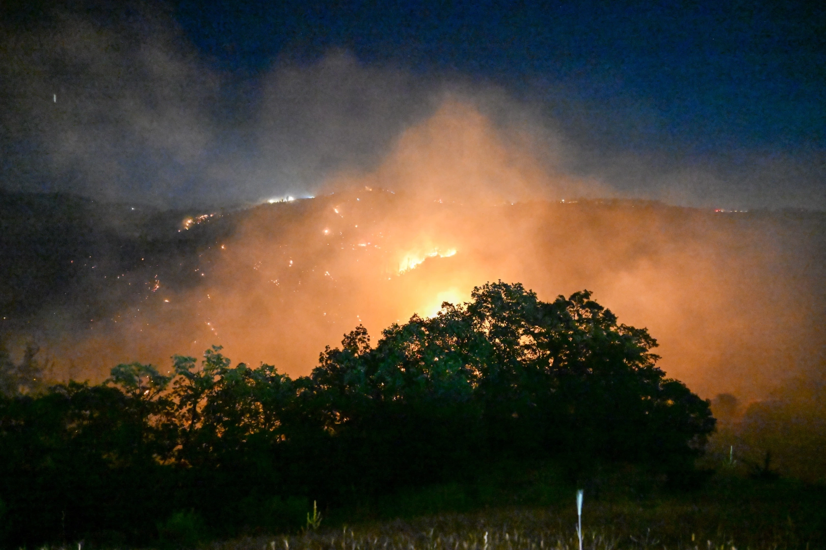 TEDBİR AMAÇLI 2 MAHALLEDE 20 EV TAHLİYE EDİLDİManisa'nın Sarıgöl ilçesinde makilik alanda çıkan ve rüzgarın etkisiyle Uşak'ın Eşme ilçesi sınırlarına yayılan yangında, alevler yerleşim yerlerini de tehdit etmeye başladı. Eşme ilçesine bağlı Eşmetaş Mahallesinde 15 ev ile Sandal Mahallesindeki 5 ev tedbir amacıyla tahliye edildi. Yangının söndürülmesi için müdahaleler yoğun şekilde sürdürülüyor. İnan YAMAN/UŞAK, (DHA)-FOTOĞRAFLI