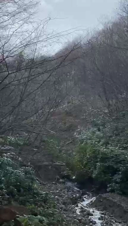 Tezcan SOLMAZ/ DÜZCE, (DHA)- DÜZCE'nin Akçakoca ilçesinde, ormanda heyelan meydana geldi. Ormanda çalıştıkları sırada olan heyelanı cep telefonuyla kaydeden ekiplerin, olaydan son anda kurtuldukları belirtildi. Olay, sabah saatlerinde, Akçakoca ilçesi Deredibi köyünde meydana geldi. Günlerdir etkili olan sağanak sonrası köydeki ormanda heyelan meydana geldi. Bu sırada, kapanan orman yollarını tespit etmek için çalışma yapan Akçakoca Orman İşletme Müdürlüğü ekipleri, heyelan olan yerin yakınında toprak altında kalmaktan sonra anda kurtuldu. Görevliler, heyelan anını cep telefonu kamerasıyla kaydederken, yaşanan panik anları da görüntüye yansıdı. Görüntüde, görevlilerden birinin, "Aman aman, iyi ki kaçmışız. 5 dakika önce geçtik yahu oradan" dediği duyuldu. (DHA) FOTOĞRAFLI