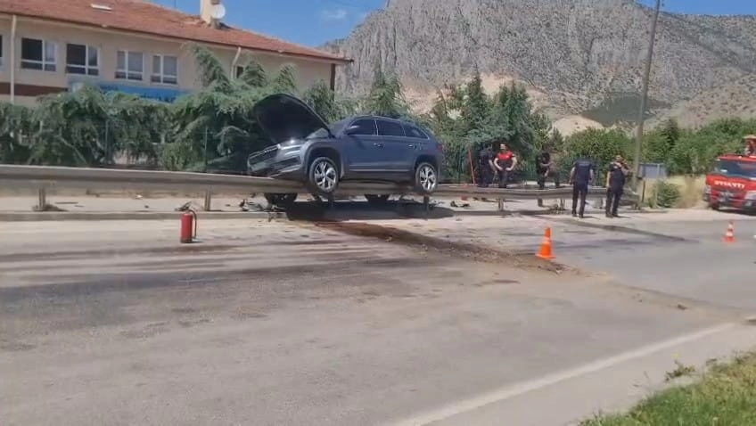 Şerife Serap KARA/AMASYA, (DHA)-AMASYA'da otomobil, yol kenarındaki bariyerlere çarptı. Otomobil bariyere asılı kalırken, kazada 1 kişi yaralandı. Kaza, saat 13.30 sıralarında Helvacı Mahallesi Çağlayan Caddesi'nde meydana geldi. Nurhan A. yönetimindeki 06 EBS 763 plakalı otomobil, yolun kenarındaki bariyerlere çarpıp sürüklendi. Otomobil bariyere asılı kalırken, kazada araçta yolcu olarak bulunan Hasan A. yaralandı. İhbarla kaza yerine sağlık, itfaiye ve polis ekipleri sevk edildi. Yaralı sağlık ekiplerinin ilk müdahalesinin ardından Amasya Üniversitesi Sabuncuoğlu Şerefeddin Eğitim ve Araştırma Hastanesi'ne kaldırıldı. Yaralının durumunun iyi olduğu öğrenilirken, kaza ile ilgili soruşturma başlatıldı. (DHA)