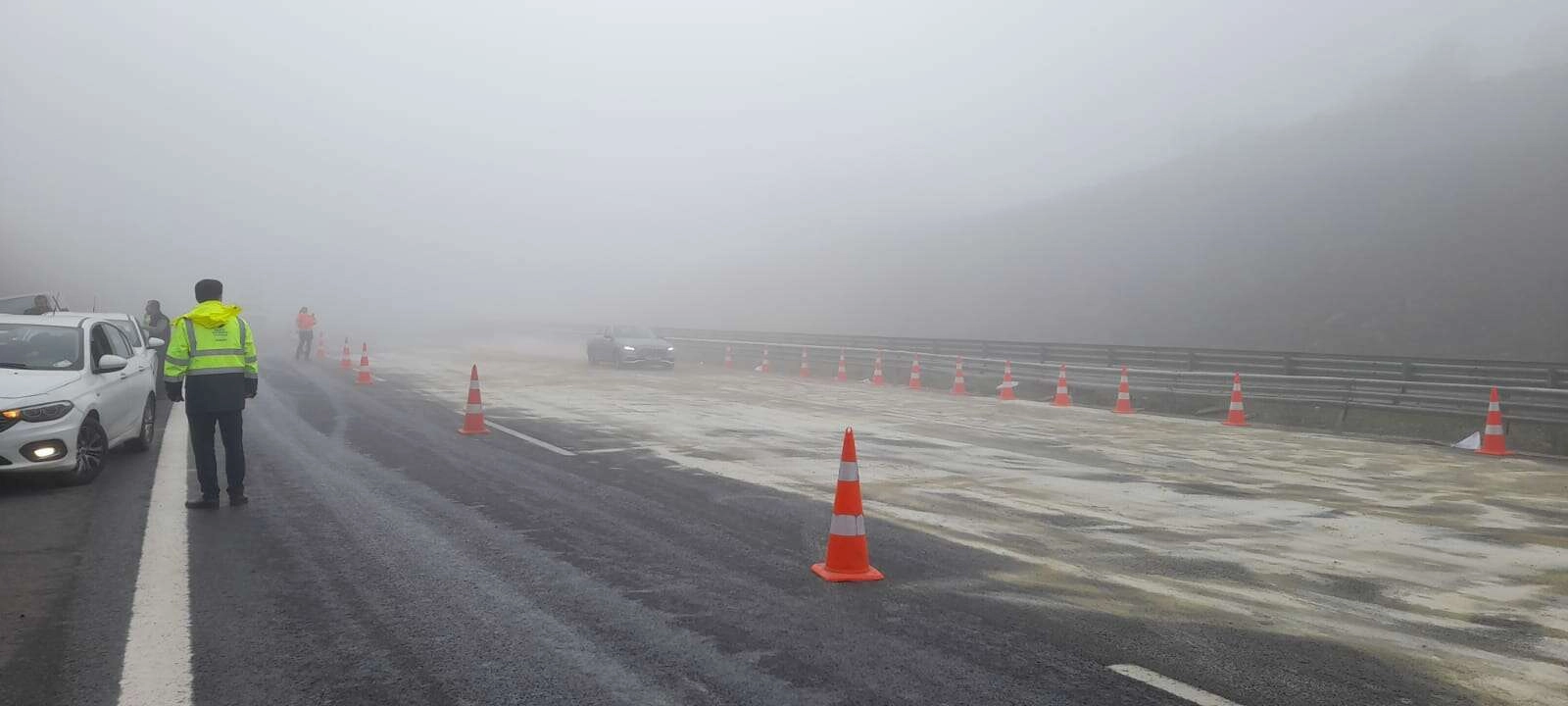 İLK KAZA SONRASI YOLCULAR OTOBÜSTEN İNMİŞ Sakarya'da, Kuzey Marmara Otoyolu'nda 10 kişinin öldüğü 59 kişinin de yaralandığı zincirleme kazanın detayları ortaya çıkmaya başladı. Yoğun sisin oluştuğu yolda, ilk olarak sol şeritte yavaşlayan kamyonete arkasından gelen yolcu otobüsü çarptı. Araçlar, yolun sol şeridinde kaza nedeniyle dururken, otobüsteki yolculardan bazıları da yola indi. Sis nedeniyle görüş mesafesinin düştüğü yolda, arkadan gelen, aralarında 2 yolcu otobüsü ve 2 TIR'ın da olduğu 5 araç daha kazaya karıştı. Kazada ölenlerin arasında, otobüsten yola inen yolcuların da bulunduğu belirtildi. YOL, 6 SAAT SONRA AÇILDI Kazaya karışan 7 araç yoldan kaldırıldı. Karayolları ekiplerinin de temizlik çalışmasını tamamlamasıyla, Kuzey Marmara Otoyolu'nun İstanbul yönü, 6 saat sonra yeniden trafiğe açıldı. 6 SÜRÜCÜ GÖZALTINDA Kazaya karışan 7 araçtan 6'sının sürücüsünün gözaltına alındığı öğrenildi. Sürücülerin emniyetteki sorgusu sürüyor. (DHA)