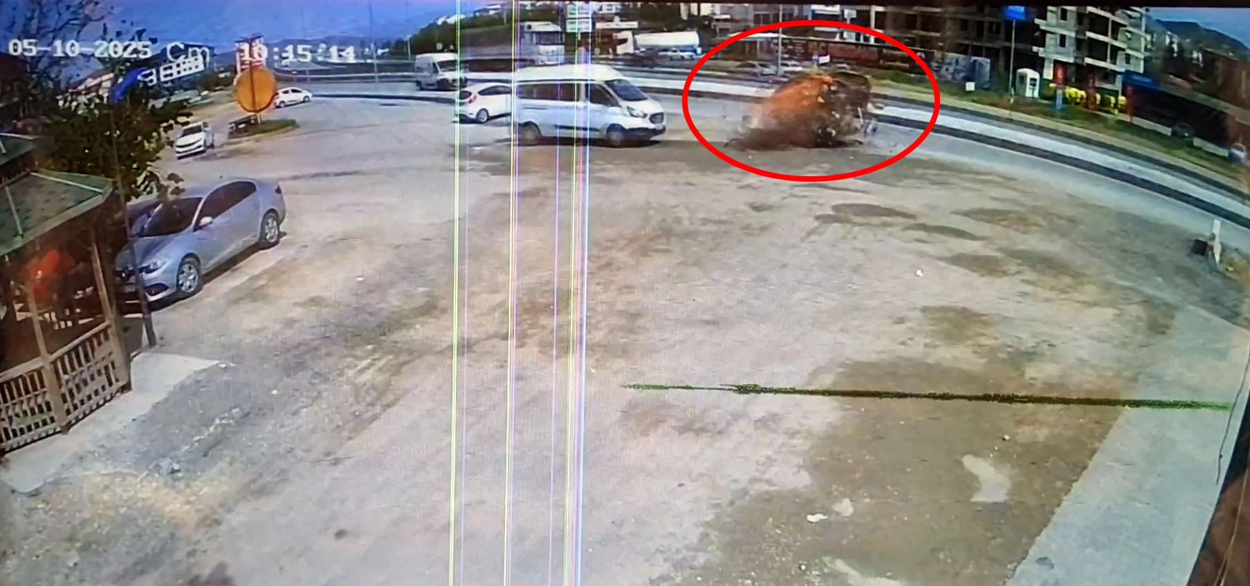 Burak CAN/KIRIKKALE, (DHA)-KIRIKKALE'de taksinin beton bariyere çarptığı kazada 1'i ağır 2 kişi yaralandı. Kaza, güvenlik kamerasına yansıdı. Kaza, sabah saatlerinde Yahşihan ilçesi Ankara-Kırıkkale kara yolu Yenişehir Kavşağı yakınında meydana geldi. Osman Y. yönetimindeki 71 T 2038 plakalı taksi, beton bariyere çarparak savruldu. Tekrar bariyere çarparak duran araç hurdaya dönerken, sürücü ile takside bulunan yabancı uyruklu yolcu yaralandı. İhbarla kaza yerine sağlık ve polis ekipleri sevk edildi. Yaralılar, ambulanslarla hastaneye kaldırıldı. Taksicinin durumunu ağır olduğu belirtilirken, kaza bir iş yerinin güvenlik kamerasına yansıdı. Kazayla ilgili inceleme başlatıldı. (DHA)