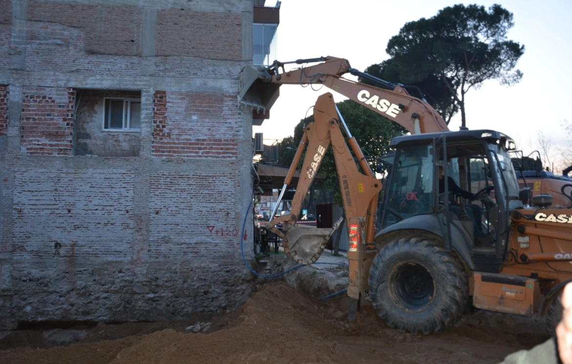 Bahattin ALBAYRAK/NAZİLLİ (Aydın), (DHA)- AYDIN’ın Nazilli ilçesinde bir binanın temel kazı çalışması yapılırken yan taraftaki 4 katlı binanın zemininde toprak kayması meydana geldi. Kepçe operatörü, iş makinesinin kepçesini 4 katlı binanın duvarına dayayarak önlem alırken, binada oturanlar tahliye edildi. Adrese gelen AFAD ve itfaiye ekipleri çalışma başlattı. Olay, saat 18.45 sıralarında Nazilli’de Yeşil Mahalle Atatürk Bulvarı’nda meydana geldi. İddiaya göre, bir arsa üzerine yapımı planlanan binanın temel kazısı sırasında, arsanın bitişiğindeki binanın zemininde toprak kayması meydana geldi. Durumu fark eden iş makinası operatörü, kepçeyi 4 katlı binanın duvarına dayayarak önlem aldı. Mahalle sakinlerinin ihbarı üzerine bölgeye çok sayıda AFAD, polis ve itfaiye ekibi sevk edildi. Bölgeye gelen ekipler, 4 katlı binadaki vatandaşları kontrollü bir şekilde tahliye etti. Bölgede toprak kaymasının önlenmesi ve temelin sağlamlaştırılması için beton atma çalışmalarının sürdüğü bildirildi.