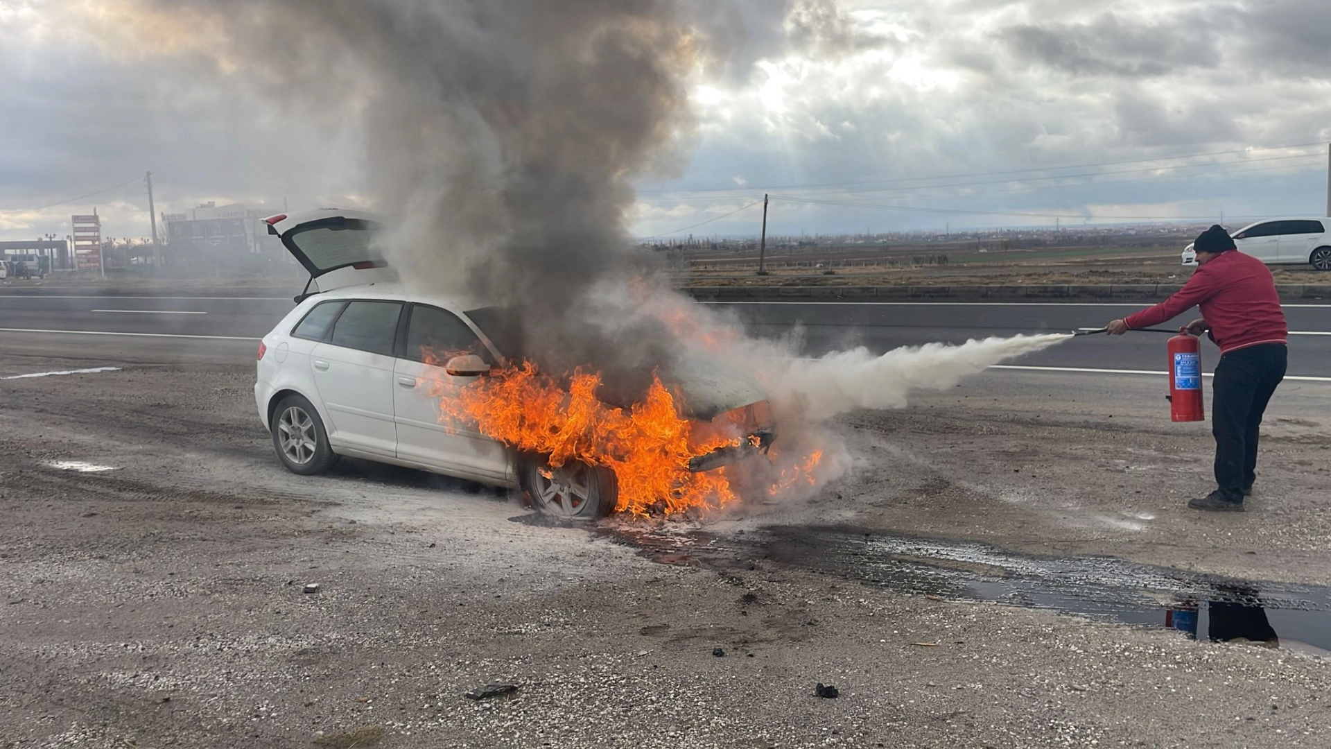Olay, saat 12.30 sıralarında Aksaray-Ankara kara yolunun 10’uncu kilometresinde meydana geldi. Yolda ilerleyen Tuncay Tunç yönetimindeki 68 HY 780 plakalı otomobil, alev aldı. Sürücü otomobili yol kenarına çekti. Alevlerin sardığı otomobiline yangın tüpüyle müdahale eden Tunç’un çabası yeterli olmadı. İhbar üzerine gelen itfaiye ekiplerinin müdahalesiyle yangın söndürüldü. Otomobil kullanılamaz hale geldi. Yangının çıkış nedeninin belirlenmesi için inceleme başlatıldı.