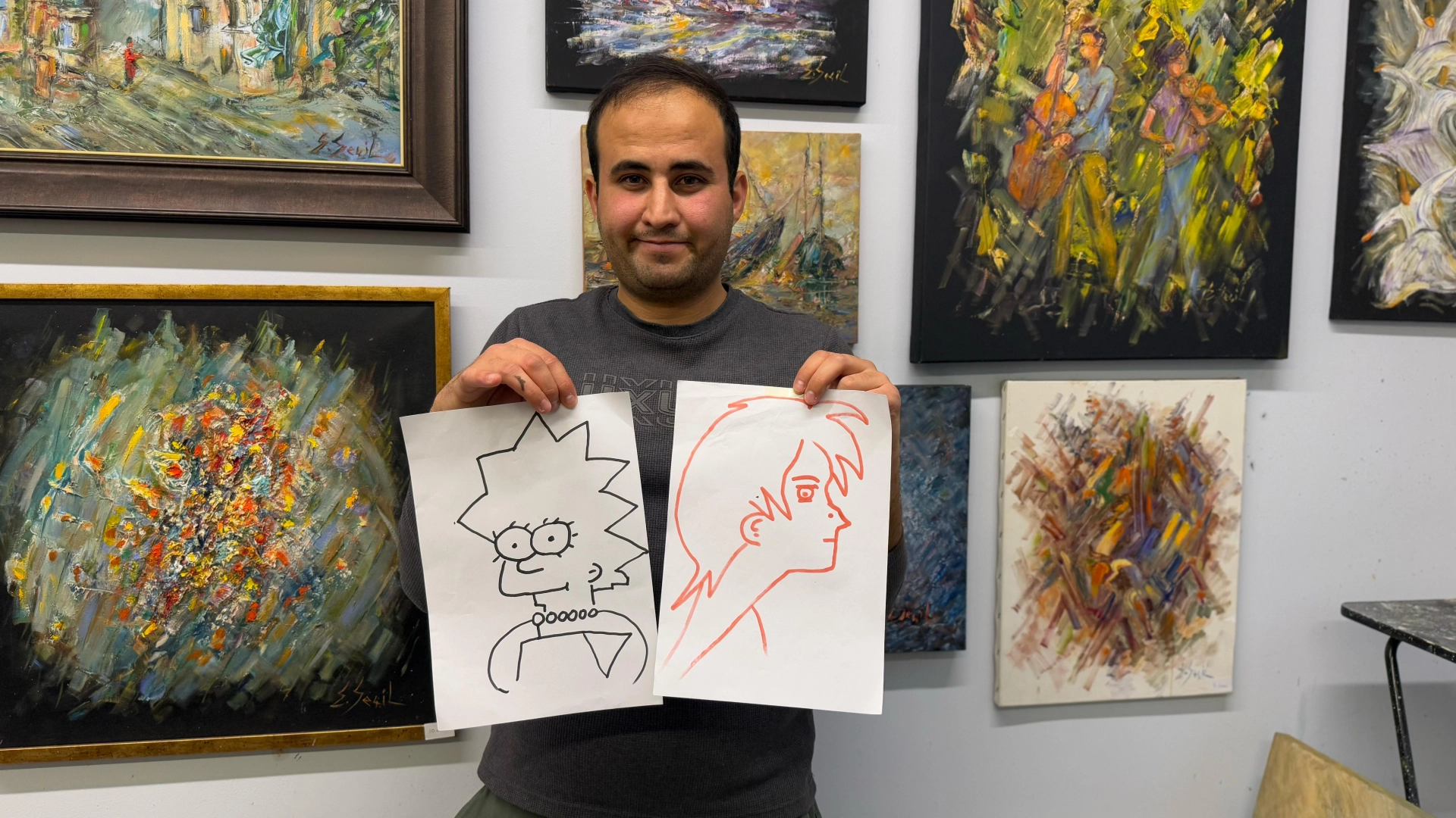 Ayşenur DEMİRTAŞ GÜL-Samet ÖKSÜZ/ANKARA, (DHA)- ANKARA Üniversitesi Bankacılık ve Sigortacılık Bölümü 2'nci sınıf öğrencisi İskender Kozan (24), aynı anda elleriyle 2 farklı resim çizebiliyor. Yaklaşık 2 yıl önce yeteneğini fark eden Kozan, herhangi bir eğitim almadan farklı kalemlerle yaptığı çizimleriyle sergi açmayı hedefliyor.Mersin'den Ankara'ya üniversite okumak için gelen İskender Kozan, 2 yıl önce bir merakla başlayan 2 eliyle aynı anda 2 farklı resim çizme yeteneğini geliştirdi. Yaptığı araştırmalar sonucunda, kendisiyle aynı yeteneğe sahip kişi sayısının çok az olduğunu öğrenen Kozan, mezun olduktan sonra kendi atölyesini kurup, sergi açarak adını dünyaya duyurmak istiyor. İskender Kozan, resim üzerine eğitimi olmadığı halde kendini geliştirmek için çok çalıştığını ve defalarca başarısız denemeler yapmasına rağmen pes etmediğini dile getirdi. Çok çalışarak hedefine ulaşabileceğini vurgulayan Kozan, "Yurtta, evde, boş vakitlerimin çoğunda bu resim sanatıyla uğraşıyorum. 2 elle aynı anda 2 farklı resim çizme fikri aklıma geldiği zaman internette araştırdım. Türkiye'de kimse yapmadığından dolayı bu alana yöneldim" dedi.'İŞİN SIRRI PRATİK YAPMAK'Aynı anda 2 el ile resim çizebilmenin zorluğuna vurgu yapan İskender Kozan, "İlk başlarda 2 elle aynı anda 2 farklı resim çizmekte çok zorlanıyordum. Yavaş yavaş, çize çize kendimi hızlandırdım, pratik yaptım. Bu işin sırrı pratik yapmak. Aynı anda sağ ve sol gözümü kullanıyorum. Aynı anda sağ ve sol ellerimi, kollarımı kullanıyorum. Dünyaya adımı duyurmayı düşünüyorum" diye konuştu.'KENDİ ATÖLYEMİ AÇMA FİKRİM VAR'Okul döneminde hafta sonları garsonluk yaptığını, yaz tatilinde ise turizm sektöründe çalışarak ek gelir elde ettiğini söyleyen Kozan, "Bazen inşaatlarda da çalışıyorum, ek gelir olarak. Ben bu resim sanatına kendimi vermek istiyorum. Mezun olduktan sonra kendi atölyemi açma gibi bir fikrim var" ifadelerini kullandı. (DHA)