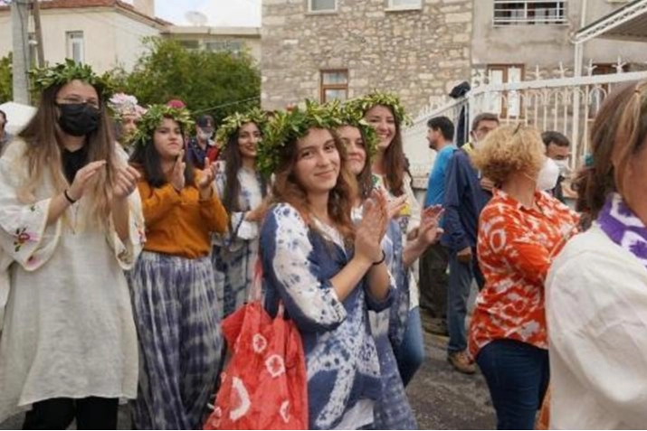 Çeşme Belediyesi tarafından bu yıl 14-15 Ekim tarihleri arasında düzenlenecek olan 9'uncu Germiyan Festivali'nde sergiden söyleşiye, atölyeden konsere kadar birçok program yer alıyor. Türkiye'de ilk kez Slow Food adayı köy olan Germiyan'da gerçekleştirilecek festivalde yerel üreticiler, ürünlerini ve lezzetlerini 2 gün boyunca açık olacak stantlarda sergileyebilecek. 14 Ekim saat 10.00'da standların açılışı ile başlayan festivalde Otantik Ev Atölye'de Şükran Tümer'in Germiyan Köyü Çeşmeleri Enttalasyonu, Otantik Giysiler Sergisi, Panaroma Germiyan Evi'nde de ise Ahmet Erdem'in 'Germiyan'dan Ildır'a Doğal Taş Mozaik Çalışmaları' Sergisi açılacak. İbrahim Ercan Otantik Ev Atölye'de 'Soğuk Sabun Yapımı', Ebru Kaya ve Dilek Algur, Çukuriçi Meydan da 'Ev Katmeri ve Düğün Lokumu Yapımı', 'Filiz Önen Kopanisti Peyniri Yapımı' atölyesi gerçekleştirecek. Ardından Germiyan İlkokulu'ndan başlayarak Eski Un Fabrikası'na kadar devam eden ve renkli görüntülere sahne olan Festival Korteji yapılacak. Köy Fırını'nda Suzan Mutlu ve Mehmet Mutlu'nun 'Geleneksel Germiyan Köy Ekmeği Yapımı' atölyesi gerçekleştirilecek. Germiyan evlerinin duvarlarına yaptığı resimlerle adını Türkiye'ye duyuran Nuran Erden Çukuriçi Meydan'da '100. Yıl Temalı Bayrak Çizimi' ile duvar boyama etkinliği gerçekleştirecek. FARUK DEMİR SAHNE ALACAK Dr. Öğr. Üyesi Murat Usta Mutfak Atölyesi'nde 'Ekmek Yapımı ve Tarihi' üzerine, Esra Erülkü Germiyan Köy Kahvesi'nde 'Zeytinyağında Duygusal Analiz Standardı, Parametreleri ve Zeytinyağının Duygusal Analizi' söyleşisi ve tadım etkinliği yapacak. Festivalin ilk gün etkinlikleri, saat 20.00'de Germiyan İlkokulu bahçesinde gerçekleştirilecek Faruk Demir konseri ile son bulacak. 'EN İYİ EKMEK' YARIŞMASI Festivalin ikinci gününde Nurcan Kurnaz Koca Emine'de 'Pirinçli Germiyan Mantısı Yapımı atölyesi, Anıl Uzcüce 'Yerel Buğdaydan Sağlıklı ve Lezzetli Kurabiye Yapımı' atölyesi, 'İdeal Ekmek Nedir ve Farklı Ekmek Türlerinin Tadımı', Mesut Yüce Yıldız 'Yerel Buğday Ürünlerinin Üretimi ve Tüketiminin Yaygınlaştırılması' söyleşilerini gerçekleştirecek. Söyleşilerle ve çeşitli etkinliklerle devam edecek festivalde birbirinden güzel ve lezzetli ekmeklerin yarışacağı 'En İyi Ekmek' yarışması düzenlenecek.(DHA)