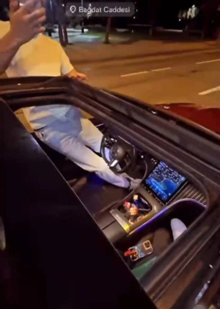 Baran AKKAYA-Emin YEŞİL/İSTANBUL, (DHA)- KADIKÖY'de otomobil ile seyir halinde olan sürücü, camdan sarkarak ayağıyla direksiyonu kontrol etti. Sürücü ve diğer 3 kişi, camdan sarkarak dans ettiği anları cep telefonu kamerasıyla kaydedip sosyal medya hesaplarından paylaştılar. Olay, 9 Nisan'da Caddebostan Mahallesi Bağdat Caddesi'nde yaşandı. Otomobil ile seyir halinde olan sürücü, camdan sarkarak ayağıyla direksiyonu kontrol etmeye çalıştı. Otomobilin arka ve ön kısmında camdan sarkan kişiler ise müzik eşliğinde dans etti. Trafiği tehlikeye atan kişiler, o anları cep telefonu kameralarıyla kaydederek sosyal medyada paylaştı. (DHA)