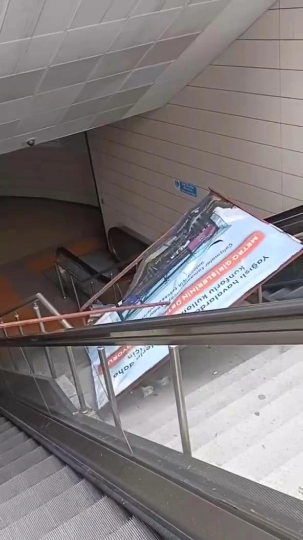 İSTANBUL (DHA) - MALTEPE metro istasyonunda yürüyen merdivenlerde üzerine reklam panosu düşen kadın yaralandı. O anlar güvenlik kamerasına yansıdı. İşten çıkarak evine giden Güner Yertek Maltepe istasyonunda indikten sonra yürüyen merdivenlere geçti. Bu sırada üzerine reklam panosunun düşmesi sonucu başından yaralanan Yertek'in yardımına çevredekiler koştu. Yertek, istasyona gelen sağlık ekibinin müdahalesinin ardından hastaneye götürüldü. Yaralanan Yertek, polise şikayette bulundu. Metro istasyonu sorumlusu N.U.İ'nin şüpheli olarak alınan ifadesinde, metro girişinde çalışma yapıldığını söyledi. Öte yandan panonun düşmesi güvenlik kamerasına yansıdı. Görüntülerde, reklam panosunun yolcuların yürüyen merdiveni kullandığı sırada düştüğü görülüyor. (DHA)