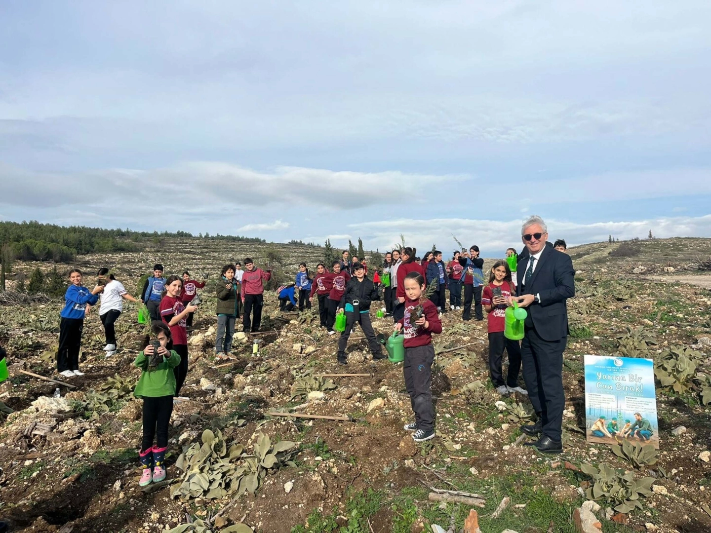 Özellikle son 2 yıl Türkiye'de ve İzmir'de yoğun orman yangını yaşandığına dikkati çeken Buca Makbule Süleyman Alkan Ortaokulu Müdürü Hasan Karaoğlu da "Hem orman yangınlarını önlemek hem de yangının ardından yeniden ağaçlandırmak için yetkililer tarafından birçok proje yapılıyor. 'Okul olarak bunun neresinde oluruz' diye düşündük. Okul Aile Birliğimiz ve velilerimizle yaptığımız istişareler sonucunda, okulumuzu yaptıran hayırsever Makbule Alkan'ın 4 Aralık 100'üncü yaş günü olması sebebiyle böyle bir proje başlatalım istedik. Bu projemizin adı 'Geleceğe Bir Can Bırak' oldu. Hem Makbule Alkan Hanımefendinin uzun yıllar, yüzyıllar boyu adının yaşamasını sağlamak hem de bu çocukların bir fidanla, ormanla buluşarak gelecekte ormanın değerini daha iyi anlamalarını sağlamak amacıyla bu projeyi başlattık. Öğrencilerimizden, velilerimizden, İzmir İl Milli Eğitim Müdürlüğü, İzmir Orman Bölge Müdürlüğü'nden de destek geldi. Projenin şimdiden amacına ulaştığını düşünüyoruz" dedi.