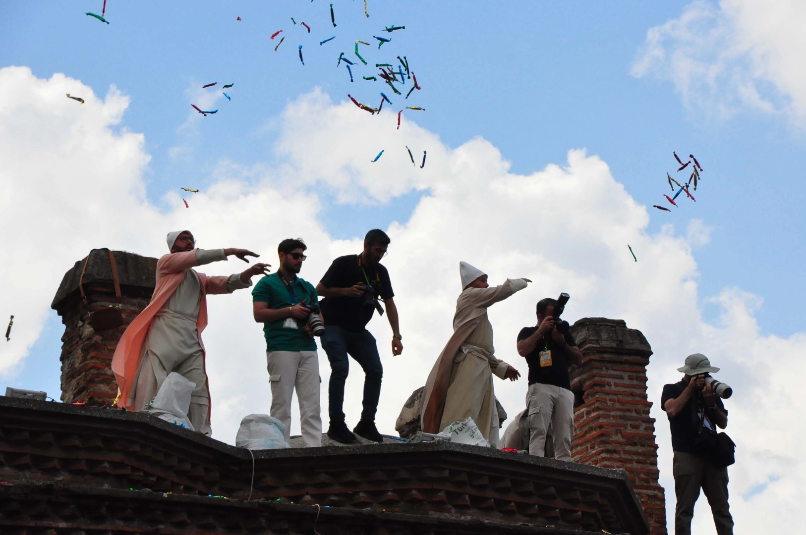 Ersan ERDOĞAN-Seza Nur ALPDÜNDAR/MANİSA, (DHA)- UNESCO Somut Olmayan Kültürel Miras Listesi’nde yer alan ve bu yıl 485'incisi düzenlenen Uluslararası Manisa Mesir Macunu Festivali, 8 ton mesir macunu saçılmasıyla sona erdi. Sultan Camisi’nin kubbe ve minarelerinin yanı sıra 44 ayrı noktadan saçımı gerçekleştirilen mesir macunları, 20 dakikada biterken, vatandaşlar şifalı macunlardan kapmak için birbiriyle yarıştı. Bazıları çıktıkları aydınlatma direkleri ve ağaçlar üzerinde şemsiyelerini ters çevirerek mesir macunu topladı.UNESCO Somut Olmayan Kültürel Miras Listesi’nde yer alan bu yıl 485’inci düzenlenen Uluslararası Manisa Mesir Macunu Festivali, renkli görüntülerle başladı. Festivale, Manisa Valisi Vahdettin Özkan, Manisa Büyükşehir Belediye Başkanı Ferdi Zeyrek, TBMM eski başkanlarından Bülent Arınç, AK Parti Manisa milletvekilleri Mücahit Arınç, Tamer Akkal, CHP Manisa milletvekilleri Selma Aliye Kavaf, Bekir Başevirgen, Ahmet Vehbi Bakırlıoğlu, İYİ Parti Manisa Milletvekili Şenol Sunat, Yeni Yol Partisi Grup Başkanvekili ve Muğla Milletvekili Selçuk Özdağ, Şehzadeler Belediye Başkanı Gülşah Durbay, Manisa’yı Mesir’i Tanıtma ve Turizm Derneği Başkanı Ufuk Tanık, protokol üyeleri ve çok sayıda kişiler katıldı.Manisa Büyükşehir Belediyesi Mehter Takımı eşliğinde kortej yürüyüşü yapıldı. Kortejde, kentte yetişen Osmanlı padişahları, şehzadeler, Hafsa Sultan ve Merkez Efendi de temsil edildi. Öte yandan, kortej boyunca Türk ve yabancı halk oyunları ekipleri, gösteriler sundu. Valilik önünden başlayarak Sultan Camisi önünde son bulan kortej boyunca protokol üyeleri, halkı selamladı.Öğle namazına müteakip temsili Hafsa Sultan’ın Merkez Efendi’ye berat vermesinin ardından Sultan Camisi’nin kubbe ve minarelerinden alanda ellerini açarak bekleyenlere şifalı macunlar saçıldı. 44 ayrı noktadan yapılan saçım 20 dakika boyunca sürdü. Vatandaşlar, camiye yakın binalarda da saçımı gerçekleştirilen şifalı macunlardan kapmak için birbiriyle yarıştı. Bazıları çıktıkları aydınlatma direkleri ve ağaçlar üzerinde şemsiyelerini ters çevirerek mesir macunu toplarken, ortaya renkli görüntüler çıktı.MESİRİN TARİHÇESİOsmanlı Padişahı Yavuz Sultan Selim'in eşi, 'Muhteşem Süleyman' olarak tarihe geçen Kanuni Sultan Süleyman'ın annesi Hafsa Sultan, Manisa'da hastalanır. Hafsa Sultan'ın yaptırdığı Sultan Camisi Medresesi'nin başına getirilen Merkez Efendi, bitki ve baharatların karışımından oluşan bir macun hazırlar. 41 çeşit baharat karıştırılarak, hazırlanan macunu yiyen Hafsa Sultan sağlığına kavuşur. Daha sonra Hafsa Sultan, hastalara bu macunun verilmesini ister. Hafsa Sultan daha sonra kağıtlara sardırılan macunun kendi yaptırdığı Sultan Camisi'nin kubbe ve minarelerinde halka saçılmasını buyurur. Halk, her yıl 21 Mart’ta Sultan Camisi'nin önünde kendiliğinden toplanmaya başlar. Böylece Manisa Mesir Şenlikleri doğar. 1539'dan bu yana on binlerce insan, Sultan Camisi etrafında toplanır, doğanın uyanışı, baharın gelişini, bereket ve bolluğun başlangıcını seyreder.41 ÇEŞİT BAHARAT KULLANILIYOR483 yıldır içeriği bozulmadan hazırlanan mesir macununun içinde şunlar bulunuyor: "Tarçın, karabiber, yenibahar, karanfil, çörek otu, hardal tohumu, anason, kişniş, zencefil, hibiskus, zerdeçal, Hindistan cevizi, rezene, kebabiye, sinameki, sarıhalile, vanilya, darıfülfül, kakule, havlıcan, hıyarşembe, safran, kimyon, çam sakızı, mürsafi, meyan balı, zulumba, limon kabuğu, portakal kabuğu, deve dikeni tohumu, keten tohumu, keçiboynuzu, udi hindi, ısırgan tohumu, ak biber, üzüm çekirdeği, hayıt tohumu, biberiye, funda yaprağı, melisa otu, karahalile." (DHA)
