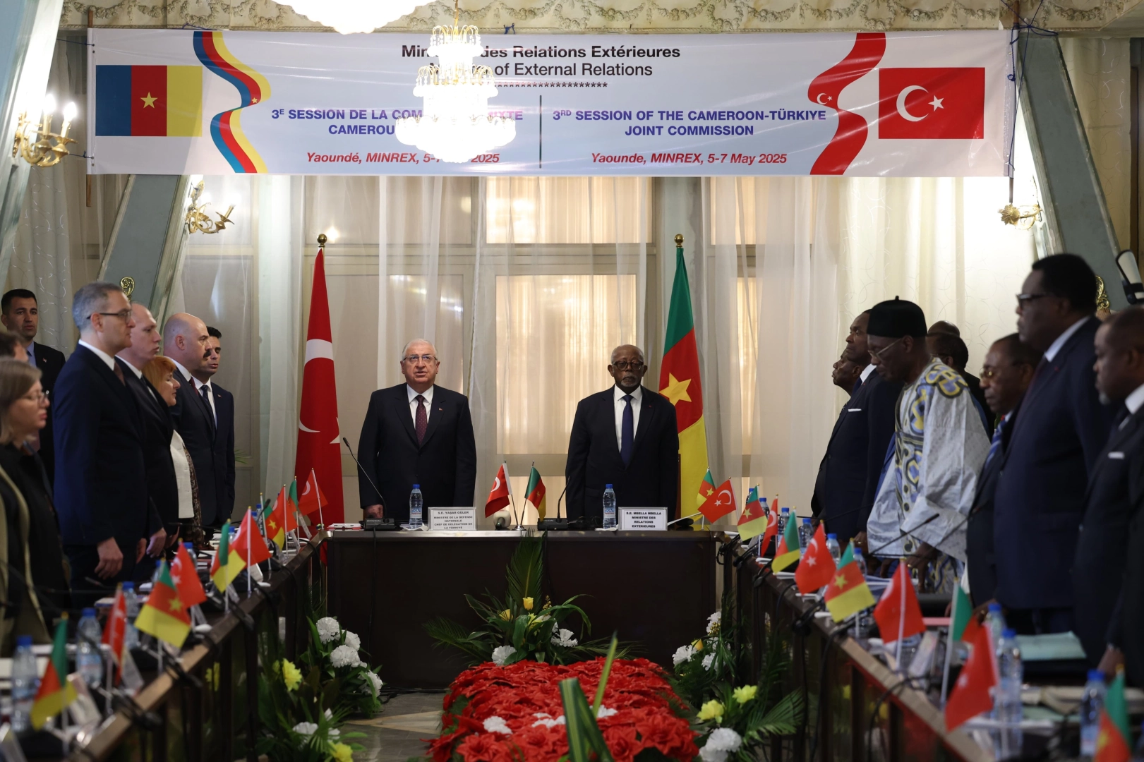KAMERUN, (DHA) – MİLLİ Savunma Bakanı Yaşar Güler, Türkiye-Kamerun Karma Ekonomik Komisyonu 3’üncü Dönem Toplantısı'na başkanlık etti.Milli Savunma Bakanı Yaşar Güler, Kamerun ziyareti kapsamında Türkiye-Kamerun Karma Ekonomik Komisyonu (KEK) 3’üncü Dönem Toplantısı'na başkanlık etti. Milli Savunma Bakanlığı tarafından toplantıya ilişkin yapılan açıklamada, “Milli Savunma Bakanı Yaşar Güler ve Kamerun Dış İlişkiler Bakanı Lejeune Mbella Mbella, gerçekleştirdikleri görüşmenin ardından Türkiye-Kamerun Karma Ekonomik Komisyonu (KEK) 3’üncü Dönem Toplantısı'na başkanlık etti. Toplantıya ilişkin Çalışma Tutanağı da imzalandı” denildi.