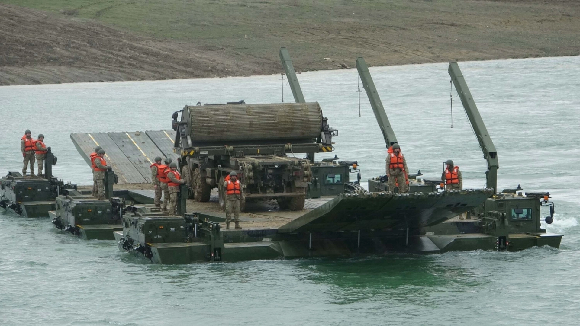 Senaryo gereği ilk olarak Karşı Kıyı İzleme Timi, zodyak bot ile gölün karşı kıyısına geçerek burada keşif ve hazırlık faaliyetini gerçekleştirdi. Daha sonra kamyon, tank ve zırhlı personel aracının karşıya geçebilmesi için yerli ve millî imkanlarla üretilen amfibik araç ‘Samur’ların kurduğu köprü sayesinde karşı kıyıya taşındı. Bu sırada birlikler botlarla belirlenen bölgelere çıkartılan birlikler düşman unsurlarıyla sıcak temasa geçti. Karşı kıyıya geçen tank ve zırhlı personel aracı engelleri, kurulan portatif köprü ile aştı. Eş zamanlı olarak dron ile bölgede sisleme çalışması yapılarak düşmanın görüşü engellendi. Eğitim planlaması kapsamında son olarak yerli ve millî imkanlarla üretilen Samurların gölet içerisinde tam bir köprü yaparak askeri araçların geçişini sağlamasının ardından eğitim sona erdi. (DHA)