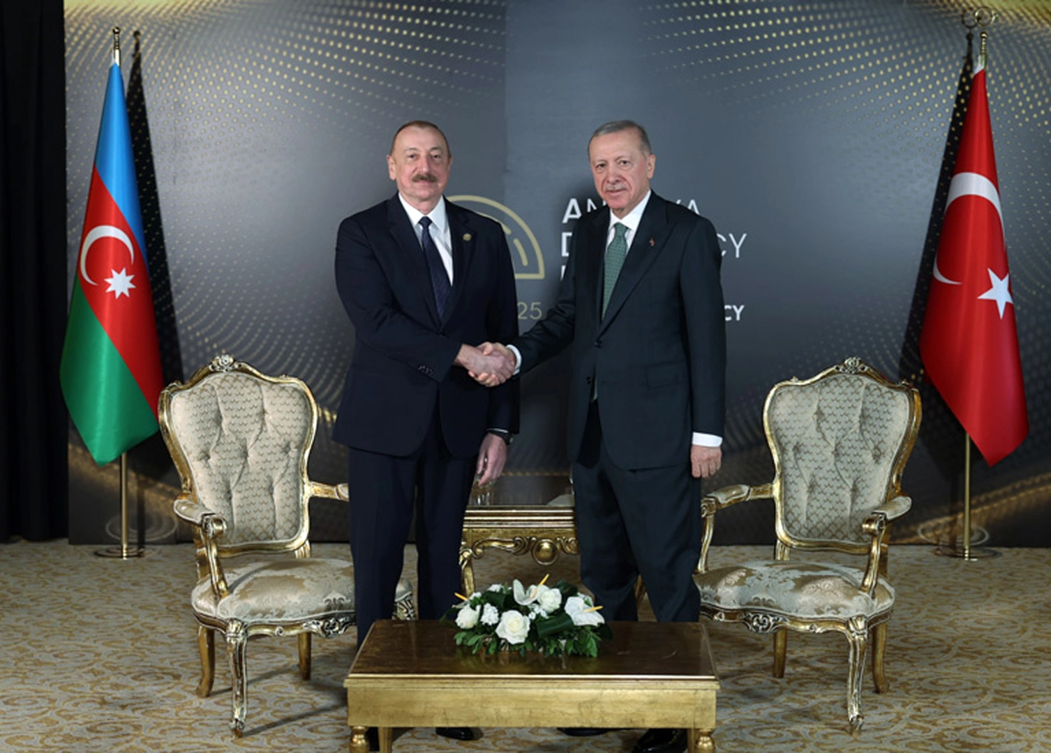 Mehmet ÇINAR/ANTALYA, (DHA)- CUMHURBAŞKANI Recep Tayyip Erdoğan, Azerbaycan Cumhurbaşkanı İlham Aliyev, Karadağ Cumhurbaşkanı Jakov Milatoviç ve Kosova Cumhurbaşkanı Vjosa Osmani-Sadriu ile görüştü.Cumhurbaşkanı Recep Tayyip Erdoğan, 4’üncü Antalya Diplomasi Forumu kapsamında Türkiye’de bulunan Azerbaycan Cumhurbaşkanı İlham Aliyev ile ikili görüşme yaptı. Cumhurbaşkanı Erdoğan, yine forum için Antalya'da bulunan Karadağ Cumhurbaşkanı Jakov Milatoviç ve Kosova Cumhurbaşkanı Vjosa Osmani-Sadriu ile de görüştü. Görüşmeler, basına kapalı gerçekleşti. (DHA)