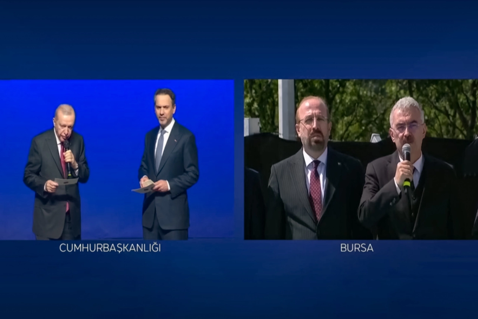 Yasin KESKİN/ KARACABEY (Bursa), (DHA)- CUMHURBAŞKANI Recep Tayyip Erdoğan’ın canlı olarak bağlandığı '2024 Yılı Yenilenebilir Enerji Yatırımları Toplu Açılış Töreni'nde, Bursa’nın Karacabey ilçesine Atares-2 Rüzgar Enerji Santrali’nin açılışı yapıldı.Cumhurbaşkanı Recep Tayyip Erdoğan, Beştepe Kongre ve Kültür Merkezi’nde düzenlenen ‘2024 Yılı Yenilenebilir Enerji Yatırımları Toplu Açılış Töreni’nde konuştu. Konuşma sırasında Türkiye genelindeki yenilenebilir enerji projelerinin açılışları için çeşitli illere canlı bağlantılar gerçekleştirildi. Bu kapsamda, Bursa’nın Karacabey ilçesine de bağlanılarak Atares-2 Rüzgar Enerji Santrali’nin açılışı yapıldı. Karacabey’de düzenlenen törene, Enerji ve Tabii Kaynaklar Bakan Yardımcısı Nevzat Şatıroğlu, Bursa Valisi Erol Ayyıldız ve il protokolü katıldı. (DHA)