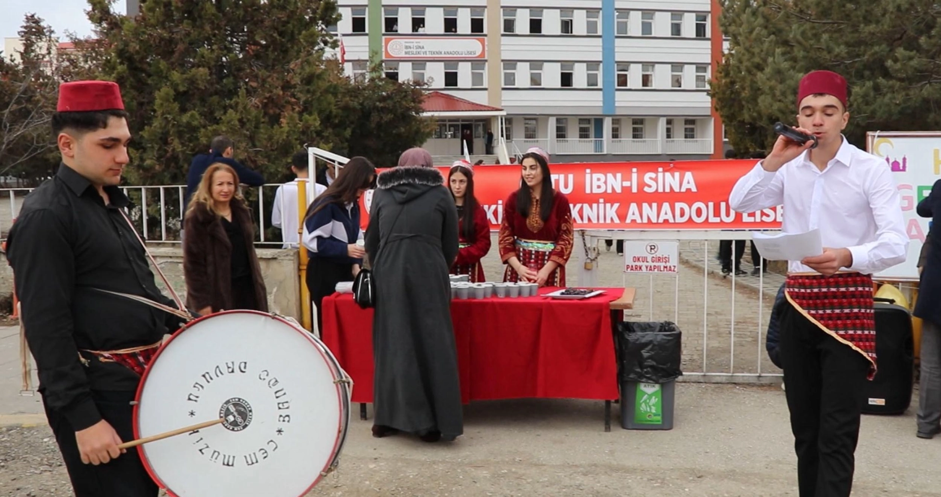 Milli Eğitim Bakanlığı’nın ramazan ayı boyunca okullarda öğrencilerin milli ve manevi değerlerini geliştirmeye yönelik eğitsel ve sosyal etkinlikler uygulanacağı konusundaki yazısı doğrultusunda Erzurum’un Oltu ilçesindeki İbn-i Sina Mesleki ve Teknik Anadolu Lisesi öğrencileri ‘Hoş geldin Ramazan’ etkinliği düzenlendi. Yöresel kıyafetler giyen öğrenciler manilerle sınıfları gezip, ramazan şerbeti ve hurma ikram etti. Sınıf ziyaretlerini tamamlayan öğrenciler, okul önüne kurdukları stantla bölge halkına da şerbet ve hurma dağıttı. Davul çalıp maniler söyleyen öğrenci, ilgi çekti.