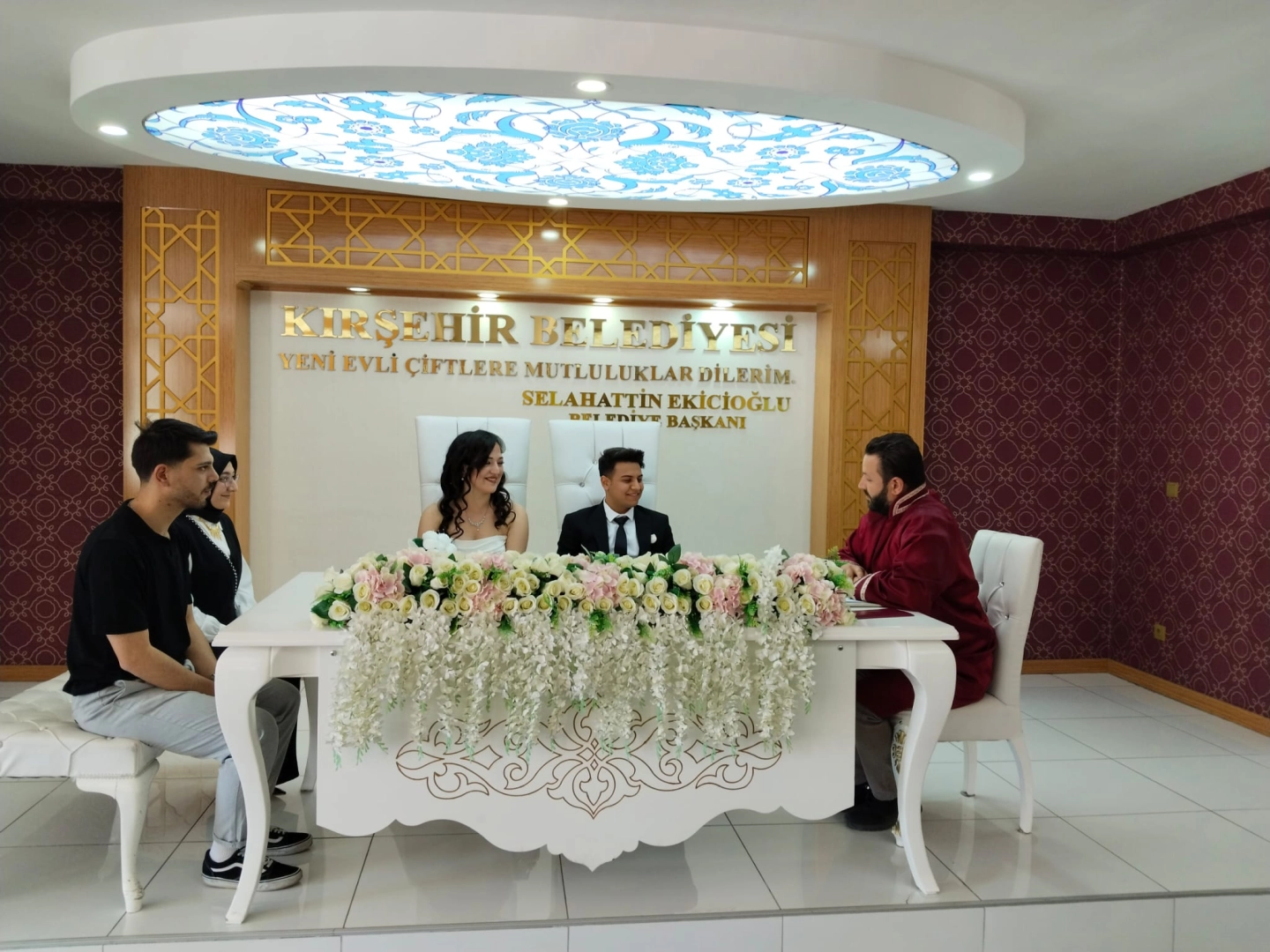 Fahrettin TOKER/KIRŞEHİR, (DHA)- KIRŞEHİR’de görsel uyumu ve akılda kalıcılığıyla dikkat çeken '05.05.2025' tarihi, evlenmek isteyen çiftlerin tercihi oldu.Kırşehir Belediyesi Evlendirme Memurluğu, yılın en yoğun günlerinden birini yaşarken, gün boyunca aralıksız nikah törenleri düzenlendi. Aylar öncesinden randevu alan çiftler, evliliklerine akılda kalıcı ve özel bir tarihte adım atmanın heyecanını yaşadı. Kırşehir’de 19 çift, 05.05.2025 tarihinde evliliğe adım attı.‘BİZİM İÇİN UNUTULMAZ BİR GÜN OLACAK’Bugünün özel bir gün olduğunu belirten Osman Faik Onaran, "Bugün tarihsel anlamında güzel bir gün olduğu için nikah tarihimizi ona göre tercih ettik. Eşim de bugünü seçtiğimiz için çok mutlu oldu" dedi.Osman Faik Onaran ile hayatını birleştiren Nilgün Dulkadir ise "Bugün itibariyle 'Onaran' soy ismini taşıyacağım. Gerçekten bizim için unutulmaz bir gün olacak. 05.05.2025 tarihinin unutulmaz bir hatırası olacak. Nikah tarihimizi 4 ay önce ocak ayında aldık. Eşimin de asla unutmayacağı bir tarih olması da ayrıca güzel" ifadelerini kullandı.'HEM EŞİMİN DOĞUM GÜNÜ HEM DE EVLENDİĞİMİZ GÜN'Bugünün kendileri için unutulmaz bir gün olduğunu aktaran Mesut Oruk da "Güzel bir gün bizim için. Bizim için çok mutlu ve unutulmaz bir gün. 05.05.2025, hem tarihsel anlamda hem de eşimin doğum günü olduğu için benim için asla unutulmaz bir tarih. Nikah tarihimizi 6 ay önce almıştık. Eşimin doğum günüyle aynı güne denk gelmesi de ayrı bir mutluluk" diye konuştu.Mesut Oruk'un eşi Elif Türkmen çok mutlu olduğunu ifade ederek "Çok mutluyuz, çok heyecanlıyız. Doğum günüm ve evlendiğim günün aynı güne denk gelmesi de ayrı bir mutluluk" dedi. (DHA)
