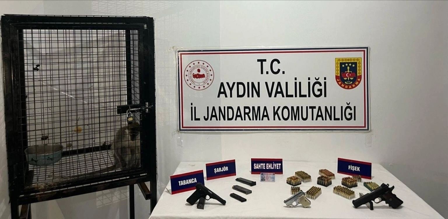 Kuşadası İlçe Jandarma Komutanlığı ekipleri, İ.Ö.’nün (54) ikametinde ruhsatsız silah bulundurduğu, silah imalatı ve ticareti yaptığı bilgisi üzerine çalışma başlattı. Dün, şüphelinin evine düzenlenen operasyonda Vervet cinsi maymun, 3 ruhsatsız tabanca, 6 şarjör, 383 farklı çaplarda fişek ile başka bir kişiye ait kimlik bilgilerini içeren sahte sürücü belgesi ele geçirildi. Gözaltına alınan İ.Ö., hakkında adli tahkikat başlatılırken, ele geçirilen maymun gerekli işlemler için Doğa Koruma ve Milli Parklar Genel Müdürlüğü ekiplerine teslim edildi. Şüpheli çıkarıldığı mahkemece tutuklandı. (DHA)