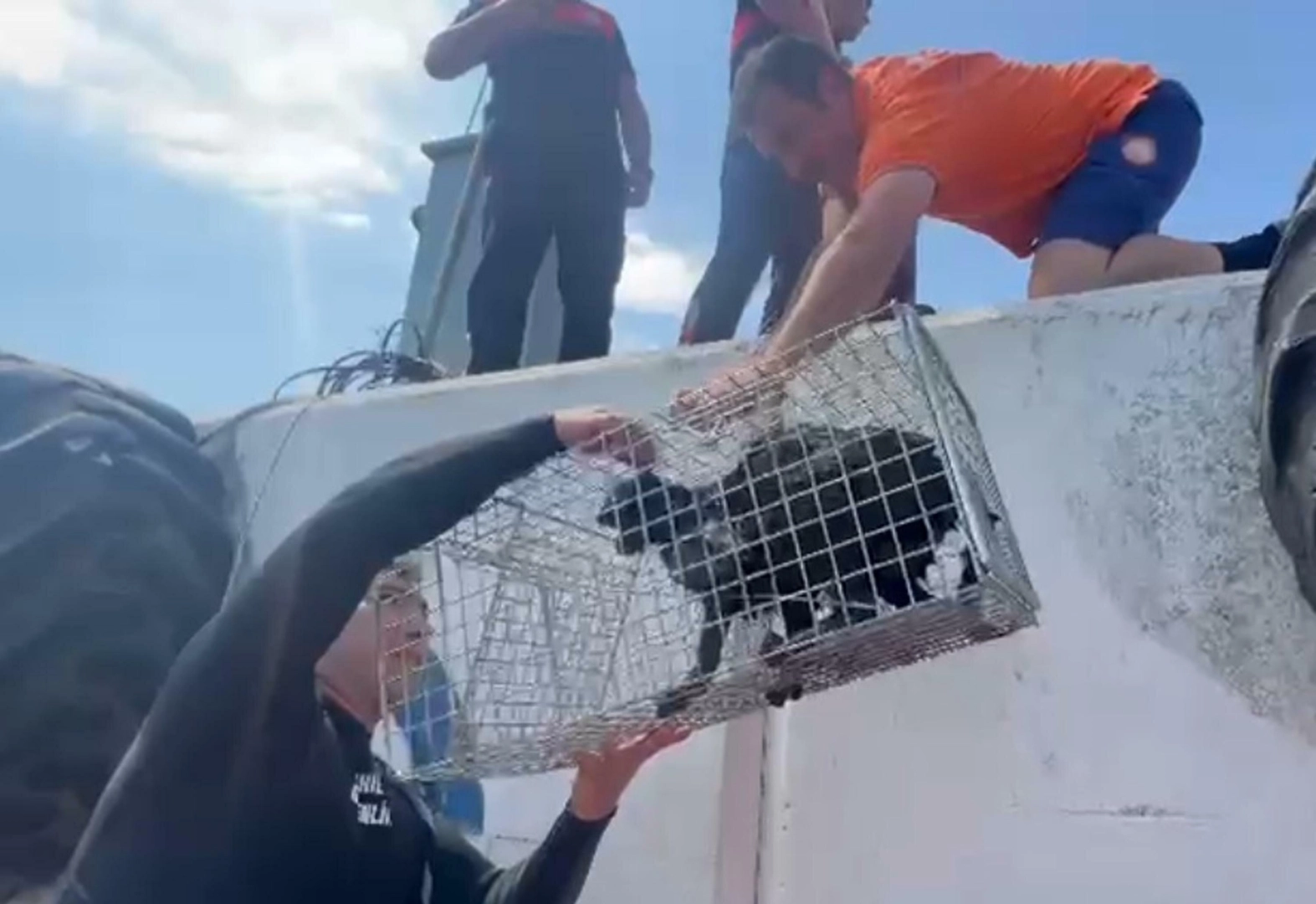Nazif Cemhan ŞEN/ÇANAKKALE, (DHA)- ÇANAKKALE'de Gestaş Feribot İskelesi'nde mendirek ayağında mahsur kalan kedi, Sahil Güvenlik ekipleri tarafından kurtarıldı.Sahil Güvenlik Batı Marmara Grup Komutanlığı Dalış, Emniyet, Güvenlik ve Arama Kurtarma (DEGAK) Özel Timi 5 Komutanlığı ekipleri, Gestaş Feribot İskelesi Mendirek ayağında bir kedinin mahsur kaldığı ihbarı sonrası bölgeye sevk edildi. Dalış faaliyetine başlayan ekipler, yaklaşık 1 saatlik çalışma ile mahsur kalan kediyi kurtararak Çanakkale İtfaiye Müdürlüğü ekiplerine teslim etti. Veteriner hekim tarafından kontrol edilen kedinin durumunun iyi olduğu öğrenildi. (DHA)