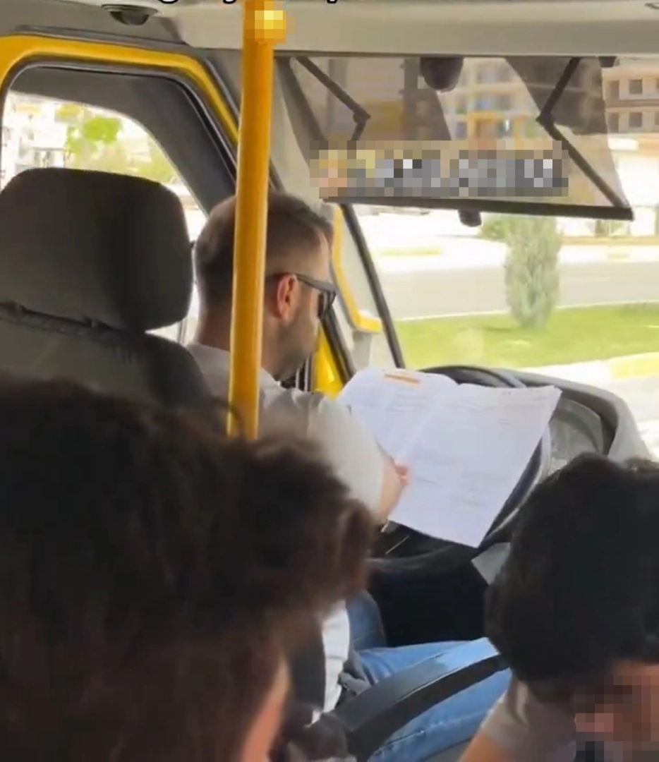 Salih KESKİN/MARDİN, (DHA)- MARDİN'de seyir sırasında kitap okuyan minibüs şoförü, cep telefonu kamerası ile görüntülendi. Artuklu ilçesinde şehir içi yolcu minibüsü şoförü, seyir sırasında direksiyonun üzerine bıraktığı ders kitabını okudu. O anlar, cep telefonu kamerasıyla görüntülendi. Görüntülerin sosyal medyada yayınlanmasının ardından inceleme başlatan Mardin Şoförler ve Otomobilciler Esnaf Odası, şoförün işine son verdi. (DHA)