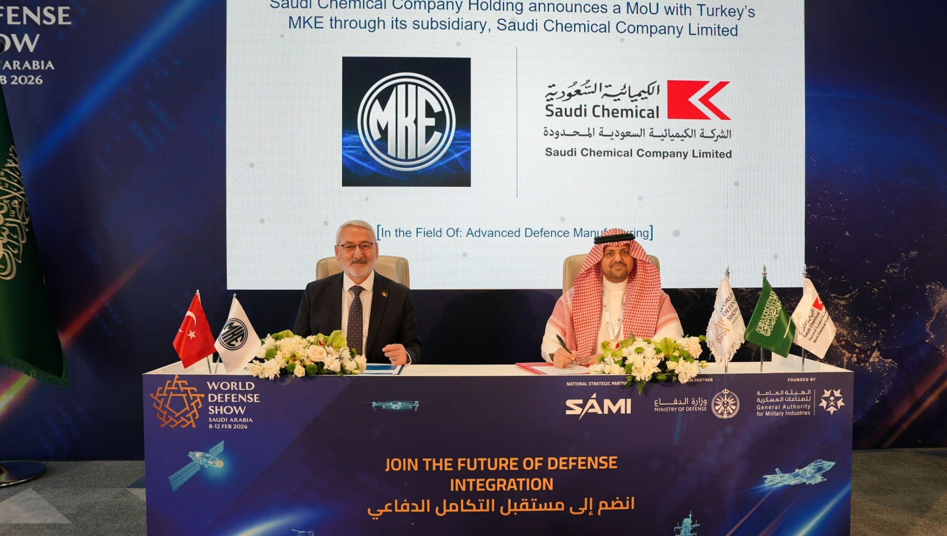 SUUDİ ARABİSTAN, (DHA) – MAKİNE ve Kimya Endüstrisi, Suudi Arabistan'da düzenlenen World Defense Show 2026 Fuarı kapsamında Saudi Chemical Company Limited ile ortak üretim ve satışa yönelik mutabakat zaptı imzaladı.
