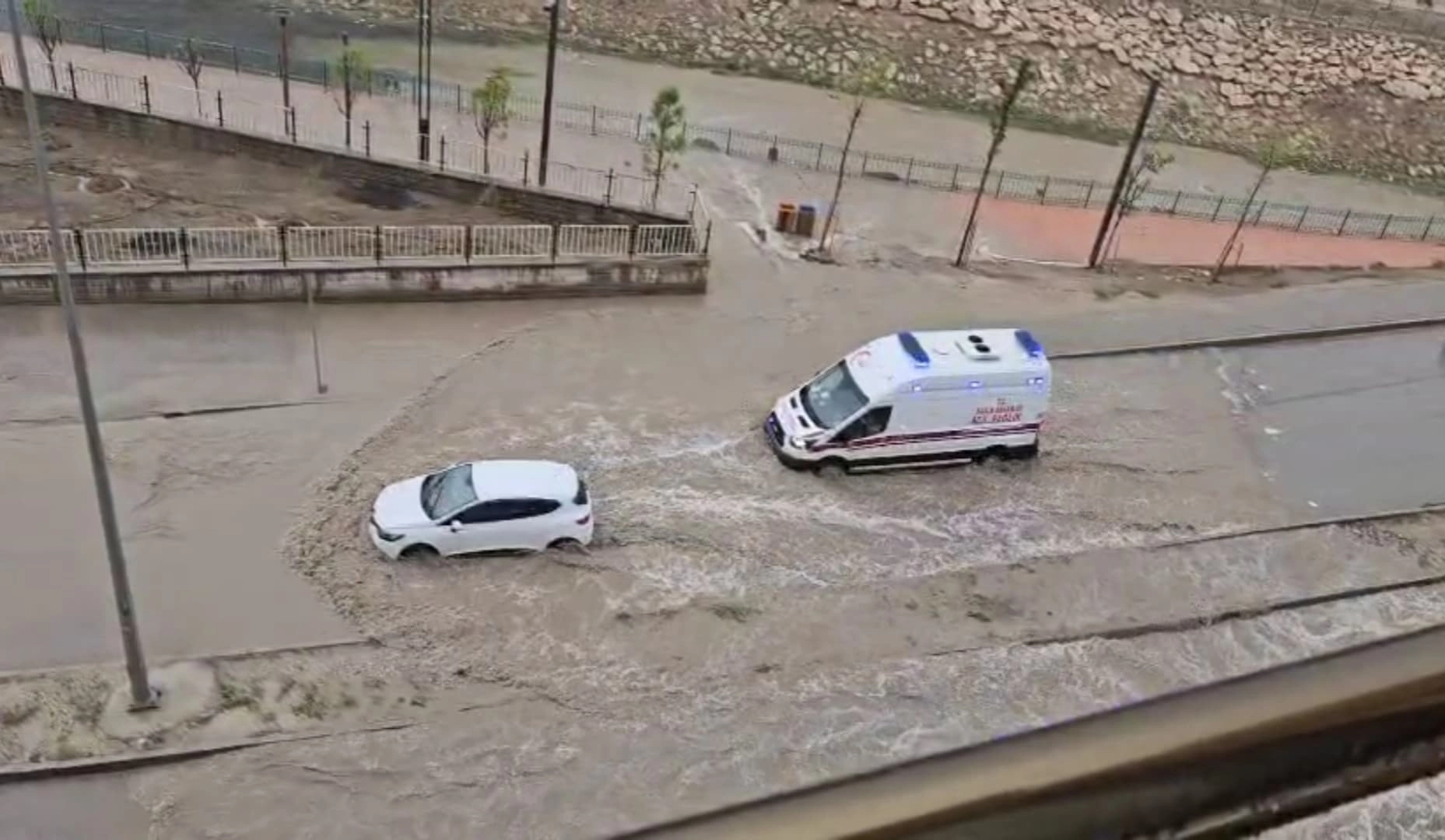 Ahmet AKKUŞ/NUSAYBİN (Mardin), (DHA)- MARDİN’in Nusaybin ilçesinde etkili olan sağanak nedeniyle cadde ve sokaklar göle döndü. Nusaybin ilçesinde akşam saatlerinde sağanak yağış, yaşamı olumsuz etkiledi. Kısa sürede şiddetini artıran yağışla birlikte logarlar taştı, cadde ve sokaklar göle dönerken birçok ev ve iş yerinin bodrum katını su bastı. Mardin Büyükşehir Belediye bağlı Nusaybin İtfaiyesi ve MARSU ekipleri, dalgıç pompalarla ve su motorlarıyla su tahliye çalışması başlattı. Su baskınları nedeniyle evlerinde mahsur kalan bazı vatandaşlar, itfaiye ekiplerinin müdahalesiyle kurtarıldı. Bazı caddelerde ise araçlar ilerlemekte güçlük çekti. Belediye ekipleri, yollarda biriken suları açtıkları tahliye kanalları aracılığıyla dere yatağına yönlendirdi. (DHA)