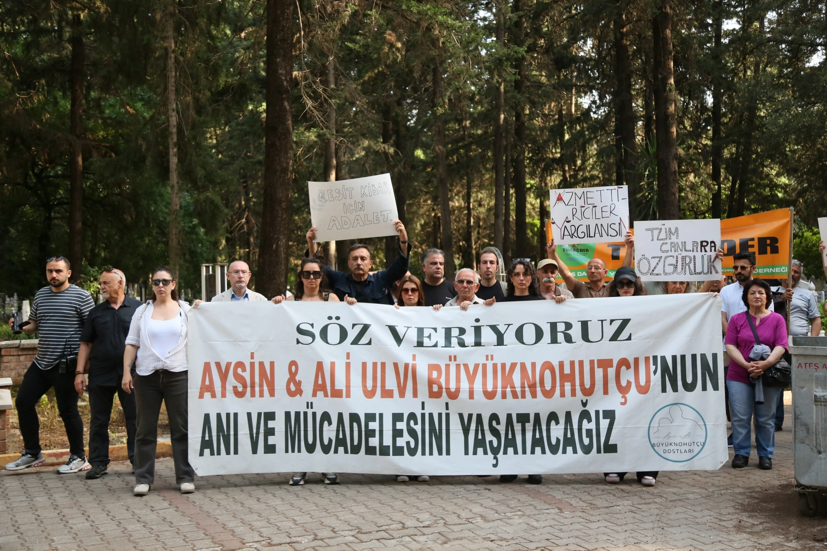 Mehmet ÇINAR/ ANTALYA, (DHA)- ANTALYA'da mermer ocaklarına karşı verdikleri mücadeleyle tanınan Ali Ulvi- Aysin Büyüknohutçu çiftinin öldürülmesinin 8'inci yıl dönümünde mezarları başında düzenlenen anma töreninde, Anayasa Mahkemesi’nden (AYM) cinayetin azmettiricileri yönünden adil bir yargılama kararı beklendiği açıklandı. Çiftin kızı Emine Büyüknohutçu, “Bu dava bir gün çözülecek. Ben bunu her sene burada bu mezar başında söylüyorum” dedi.Finike ilçesi Gökçeyaka Mahallesi Kızılcık Yaylası Adala mevkisinde dağ evinde yaşayan Ali Ulvi ve eşi Aysin Büyüknohutçu, 9 Mayıs 2017'de evlerinde uğradıkları silahlı saldırıda yaşamını yitirdi. Sedir ve kızılçam ağaçlarıyla kaplı ormandaki mermer ocaklarına karşı verdikleri mücadeleyle tanınan çiftin cinayet şüphelisi Ali Yamuç, olaydan 1 gün sonra yakalandı ve Elmalı Cezaevi'ne gönderildi. Alanya L Tipi Cezaevi'ne nakledilen Yamuç'un, 20 Eylül 2017'de intihar ettiği açıklandı.DAVA ANAYASA MAHKEMESİ'NDEÇiftin kızı Emine Büyüknohutçu, cinayetin ardından olayda azmettirici olduğuna dair Finike Cumhuriyet Başsavcılığı'na başvurarak, soruşturmanın bu yönde derinleştirilmesi talebinde bulundu. Savcılık ise kovuşturmaya yer olmadığına karar verdi. Büyüknohutçu ailesi, savcılığın kararına Elmalı Sulh Ceza Mahkemesi'ne itirazda bulundu. İtirazı değerlendiren mahkeme, savcılık kararını onadı ve itirazı reddetti. Soruşturmanın derinleştirilmesi yönündeki talebin reddedilmesi üzerine çiftin kızları ve avukatları, adil yargılanma hakkının ihlal edildiği gerekçesiyle dosyayı Anayasa Mahkemesi'ne taşıdı.MEZARLARI BAŞINDA ANMA TÖRENİBüyüknohutçu çiftinin öldürülmesinin 8'inci yıl dönümünde, Andızlı Mezarlığı'ndaki mezarları başında kızı Emine Büyüknohutçu, yakınları ve çok sayıda seveni tarafından anma töreni düzenlendi. Mezarlığa ‘Söz veriyoruz Aysin ve Ali Ulvi Büyüknohutçu’nun anı ve mücadelesini yaşatacağız’, ‘Azmettiriciler yargılansın’, ‘Tüm canlara özgürlük’, 'Ormanlar dünyanın kalbidir, koruyalım yaşatalım’ yazılı pankart ve dövizlerle gelen sevenleri çiftin mezarlarına çiçek bıraktı. Çiftin mezarının üzerine, üzerinde ağaç resimleri bulunan ‘Aysin ve Ali Ulvi Büyüknohutçu burada’ yazılı bir döviz de bırakıldı ve 1 dakikalık saygı duruşunda bulunuldu.AZMETTİRİCİ İDDİASININ YAZDIĞI MEKTUPBüyüknohutçu Dostları Grubu adına konuşan Erol Malçok, Finike ilçesi Kızılcık Yaylası'nda canlı, cansız tüm doğayı mahveden taş ve mermer ocaklarına karşı mücadele verip, bölge insanında ekolojik bir bilinç oluşturmaya çalışan Ali Ulvi ve Aysin Büyüknohutçu’nun 9 Mayıs 2017'de katledildiğini söyledi. Ölümlerinin üzerinden geçen 8 yıla rağmen bu olayın azmettiricilerinin yargılanmadığını söyleyen Malçok, “Cinayetin arkasından tutuklanan Ali Yamuç, yaşam savunucuları Ali Ulvi ve Aysin Büyüknohutçu’yu para için öldürdüğünü söyledi. Arkasından ise eşi Fatma Yamuç'un üzerinde B. Mermer'in ortaklarından N.B.'ye hitaben yazılan, ‘10 gün içerisinde param gelmezse görüşürüz, ipleriniz cebinizde haberiniz olsun’ ifadeleri bulunan bir mektup yakalandı jandarma tarafından. Bu mektuba ve cinayet delillerini saklamasına dayanarak Fatma Yamuç cinayete iştirakten tutuklandı. Ancak tüm bu süreçler derinleştirme ve etkili bir soruşturmadan yoksun işletildi. Deliller yeterince toplanmadı ve telefon kayıtlarına bakma ihtiyacı bile duyulmadı” dedi.KATİL SANIĞININ ŞÜPHELİ İHTİHARICinayet sonrası jandarma cinayet sanığı Ali Yamuç'u olay yerine götürüp, ‘Cinayeti nasıl gerçekleştirdiğini anlat’ dediğinde Yamuç’un, ‘Tel örgüden atlayıp, daha sonra ateş ettim’ dediğini kaydeden Malçok, “Ancak bacağı protezde olan birisinin o yükseklikte bir tel örgüden nasıl atlayabildiği konu edilmiyor maalesef. Peşine düşülmüyor. Ve azmettiricinin ismi mektupta az önce yukarıda andığımız, açıkça anılmasına rağmen yargılaması gerçekleşmiyor yıllardır. Daha sonra Ali Yamuç can güvenliği gerekçesiyle Elmalı Cezaevi’nden Alanya L tipi Cezaevine sevk ediliyor. 20 Eylül 2017'de ise Ali Yamuç cezaevinde ölü bulundu. Alanya Savcılığının hazırladığı rapora göre Ali Yamuç'un kaldığı koğuşun banyosunun penceresine eşofman lastiği ile kendini astığı belirtildi. Oldukça şüpheli olan bu ölüm intihar olarak kayıtlara geçti ve dosya kapatıldı. Ali Yamuç öldüğü için hakkındaki dava düşerken 17 Kasım 2017'den itibaren Fatma Yamuç cinayete yardım etme içerikli iddianame ile yargılanmaya başladı. Ancak Fatma Yamuç yargılandığı Elmalı Ağır Ceza Mahkemesinde cinayete yardım etmek suçundan beraat etti” diye konuştu.GİZLİ BİR EL İDDİASIMahkemenin dosyanın durumuna göre olası azmettiriciler hakkında ve Fatma Yamuç da delilleri kararttığı için suç duyurusunda bulunulmasına karar verdiğini söyleyen Malçok, “Bunun ardından Büyüknohutçu ailesi mahkeme kararına dayanarak soruşturmanın derinleştirilmesi için Finike Cumhuriyet Savcılığı'na ihbarda bulundu. Ancak Finike Cumhuriyet Savcılığı eski görüşlerini tekrarlayarak soruşturmayı derinleştirmeyip, yeni delil toplamayarak azmettiriciler yönünden kovuşturmaya yer olmadığına karar verdi. Ailenin itirazı üzerine dosya Elmalı Sulh Ceza Mahkemesi'ne gitti. Mahkeme maalesef azmettiriciler hakkında hiçbir değerlendirme yapmadan bu kararı onadı ve itirazı reddetti. Elmalı Ağır Ceza Mahkemesi'nden daha önceki suç duyurusuna kararına rağmen azmettiriciler yönünden yeni soruşturma yapılmadı ve böylece dosya tamamen kapatılmış oldu. Şurası bizce açıktır ki, Büyüknohutçu davasının üstü örtülmek istenmiştir. Ba