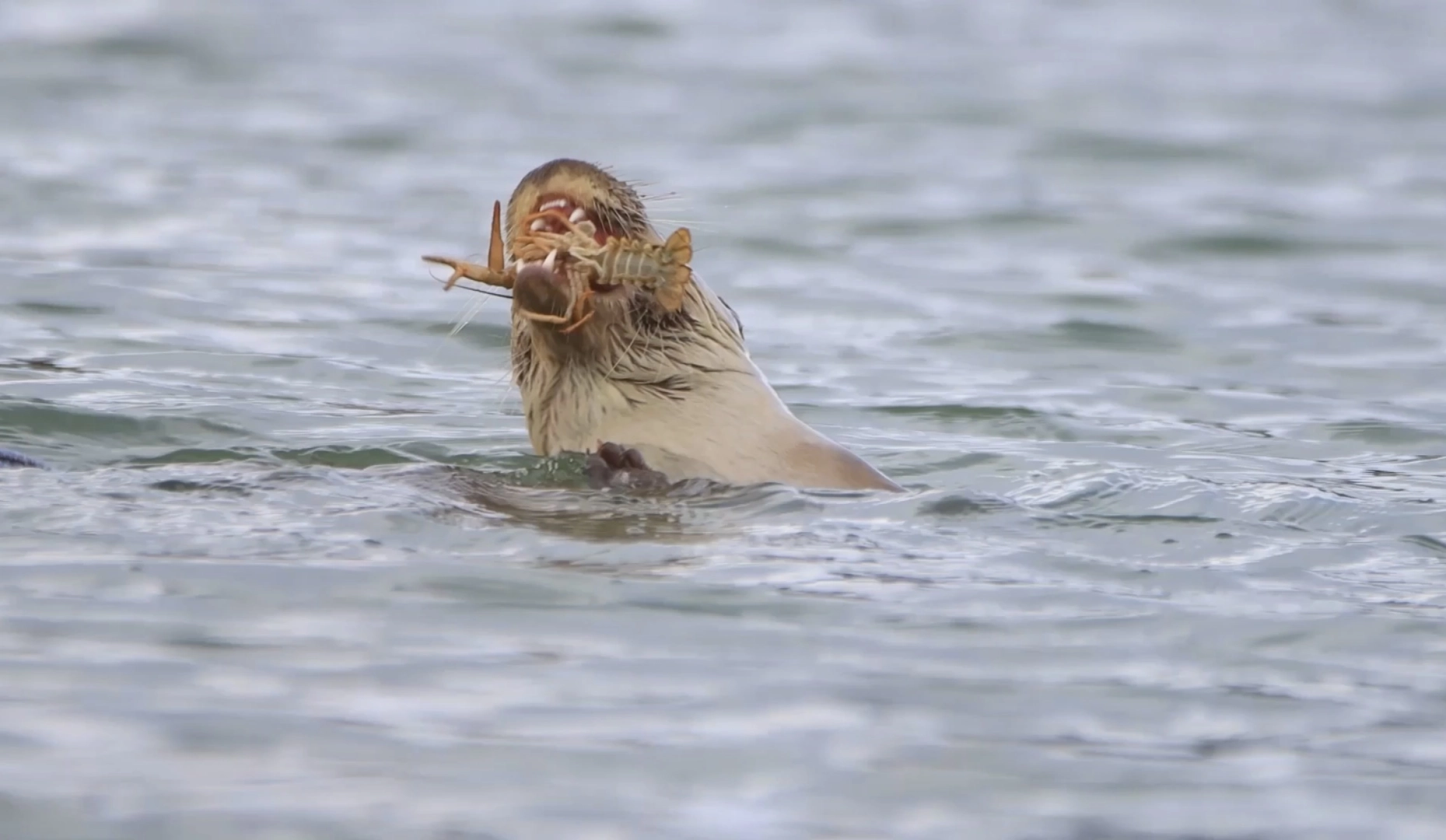 Eflani ilçesinde bulunan Bostancılar göletine giden doğa tutkunu Ömer Faruk Korkmaz, suyun yüzeyinde su samuru ile karşılaştı. Korkmaz, suda yakaladığı ıstakozu yiyen su samurunu görüntüledi. Kısa süre su yüzeyine çıkan su samuru, beslendikten sonra tekrar suya dalarak gözden kayboldu. (DHA)