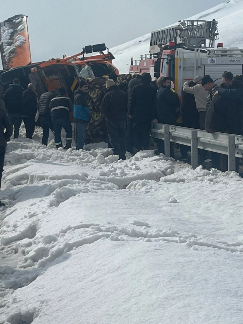 Barış KUL/ERCİŞ (Van), (DHA)- VAN'ın Çaldıran ilçesinde 2 bin 644 rakımlı Tendürek Geçidi'nde yol açma çalışması sırasında Karayolları’na ait kar küreme aracı devrildi. Kazada, araçtaki 2 kişi hayatını kaybetti.