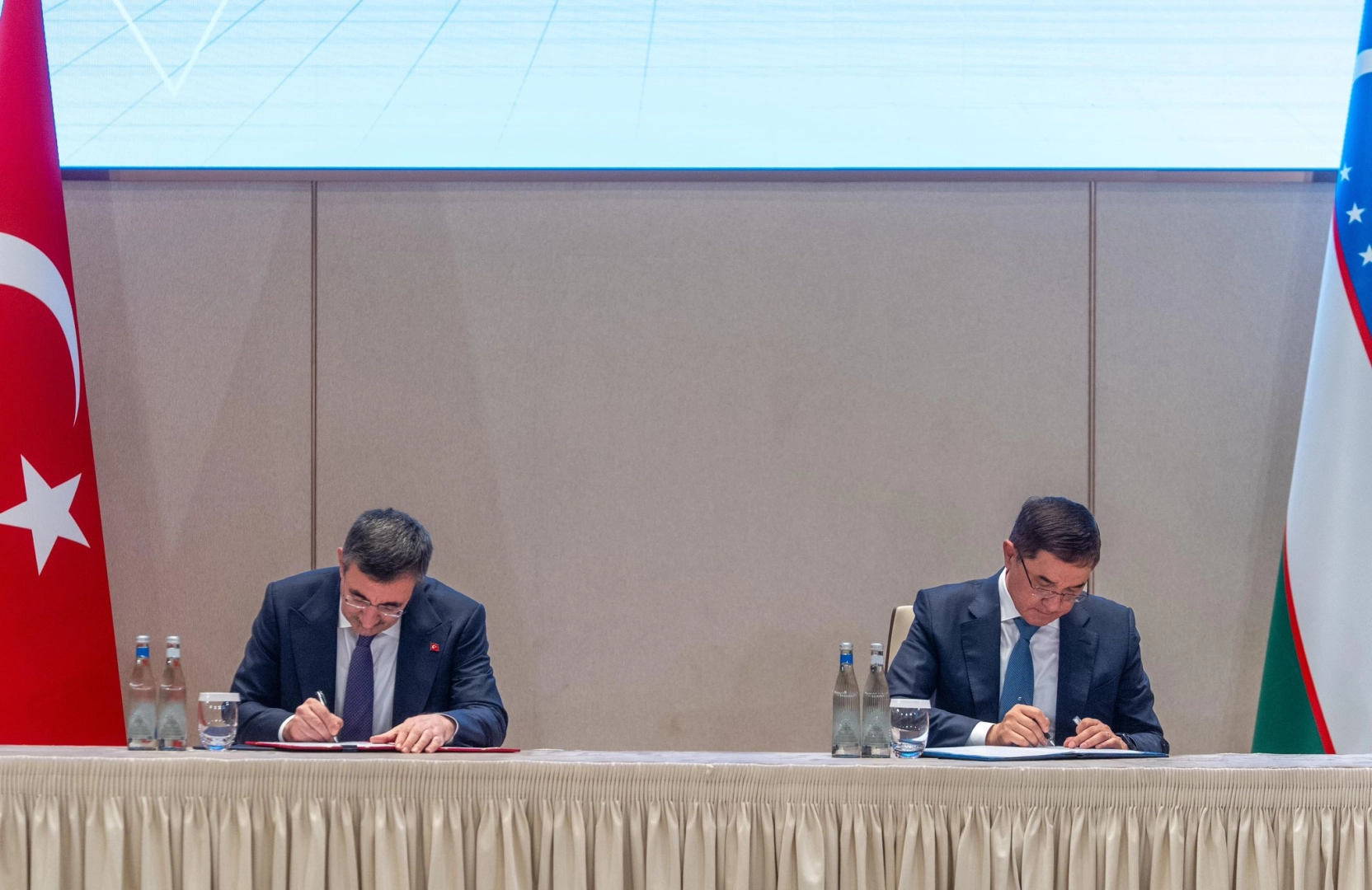 ÖZBEKİSTAN, (DHA) - TÜRKİYE ve Özbekistan arasında 8'nci Dönem Türkiye-Özbekistan Karma Ekonomik Komisyonu (KEK) Protokolü ve bu kapsamda 6 anlaşma imzalandı.Cumhurbaşkanı Yardımcısı Cevdet Yılmaz ve Özbekistan Başbakan Yardımcısı, Ekonomi ve Maliye Bakanı Cemşit Kuçkarov ikili ve heyetler arası görüşmeler yaptı. Cumhurbaşkanı Yardımcısı Yılmaz ve Kuçkarov'un başkanlığında Türkiye-Özbekistan KEK 8'nci Dönem Toplantısı düzenlendi. Toplantı sonrasında iki ülke arasındaki anlaşmaların imza törenine geçildi. Cumhurbaşkanı Yardımcısı Yılmaz yaptığı açıklamada, "Taşkent’te düzenlediğimiz 8. Dönem Karma Ekonomik Komisyonu Toplantısı kapsamında, Özbekistan Başbakan Yardımcısı Sayın Cemşit Kuçkarov ile KEK Protokolü’nü ve 82 maddelik yeni Eylem Planı’nı imza altına aldık. KEK Protokolü ve 82 maddelik Eylem Planı kapsamında; ticaret, yatırımlar, ulaştırma, enerji, tarım ve sanayi gibi pek çok alanda iş birliğimizi ileriye taşıyacak somut adımlarda mutabık kaldık. Özellikle Tercihli Ticaret Anlaşması’nın genişletilmesi, lojistikte geçiş serbestisinin sağlanması, enerji ve madencilik alanlarında ortak kapasitenin geliştirilmesi gibi başlıklar, bu eylem planının öne çıkan unsurları arasında yer alıyor. Ata yurdumuz Özbekistan’la köklü kardeşliğimizi her alanda daha da derinleştirmeye kararlıyız; bu güçlü işbirliğinin Türk Dünyası’nın ortak geleceğine de katkı sağlayacağına inanıyoruz. KEK Protokolü, 82 maddelik Eylem Planı ve imzalanan anlaşmaların, ülkelerimiz ve iki ülke iş dünyası için hayırlara vesile olmasını diliyorum" dedi.
