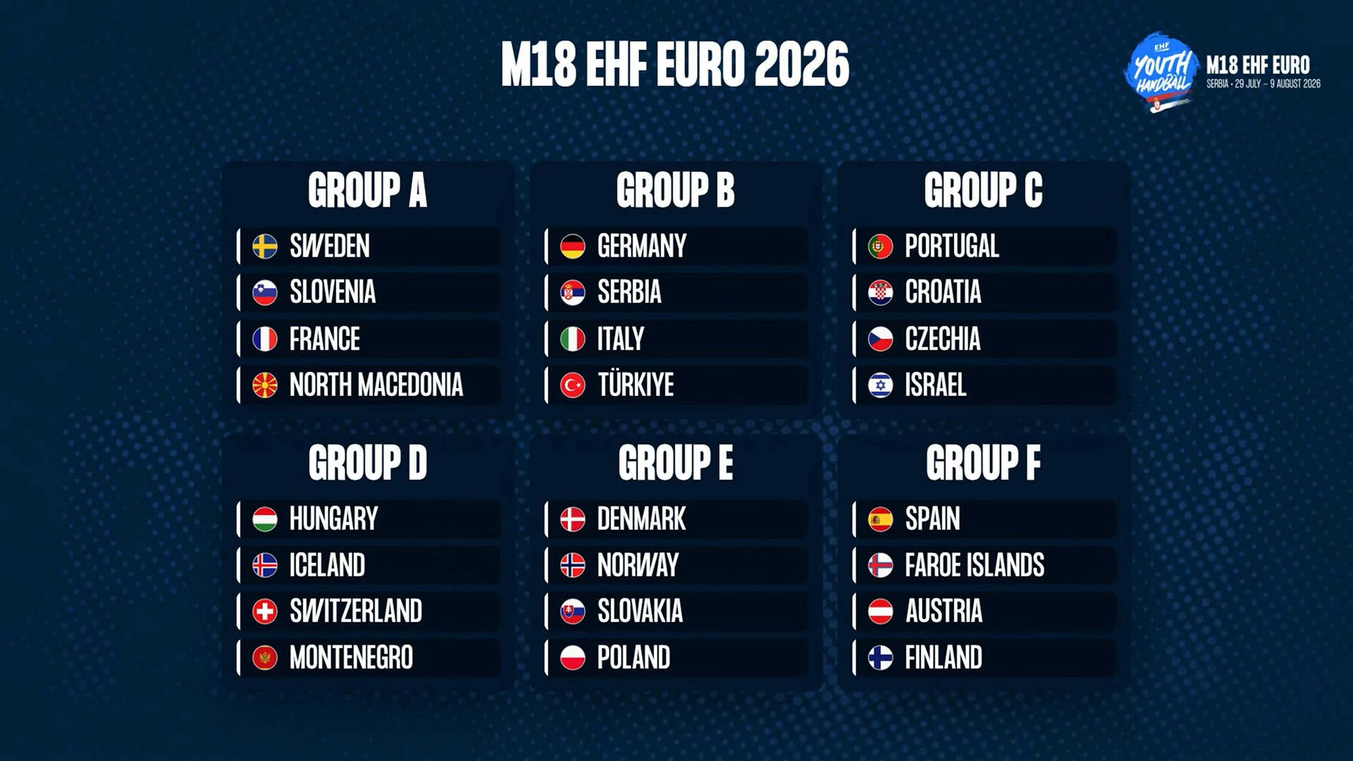 Erkek U20 Milli Takımının Avrupa Şampiyonası'ndaki rakipleri de çekilen kura neticesince belli oldu. Romanya'nın Cluj kentinde 8-19 Temmuz tarihleri arasında düzenlenecek şampiyonada, toplam 24 takım 6 grupta mücadele edecek. Avrupa Şampiyonası'nda B Grubu'nda yer alacak Milliler; Sırbistan, İsviçre ve Faroe Adaları ile karşılaşacak.