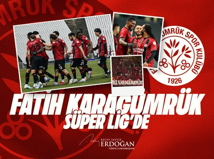 ANKARA, (DHA)- CUMHURBAŞKANI Recep Tayyip Erdoğan, 1'nci Lig Play-Off final mücadelesini kazanarak Süper Lig'e çıkmaya hak kazanan Fatih Karagümrük Spor Kulübü'nü yayımladığı mesajla tebrik etti.Cumhurbaşkanı Erdoğan, sosyal medya hesabından paylaştığı mesajında, "Trendyol 1. Lig play-off final mücadelesini kazanarak Süper Lig'e çıkmaya hak kazanan Fatih Karagümrük Spor Kulübü’nü canıgönülden tebrik ediyorum. Karagümrüklü tüm kardeşlerimi selamlıyorum" ifadelerini kullandı. (DHA)