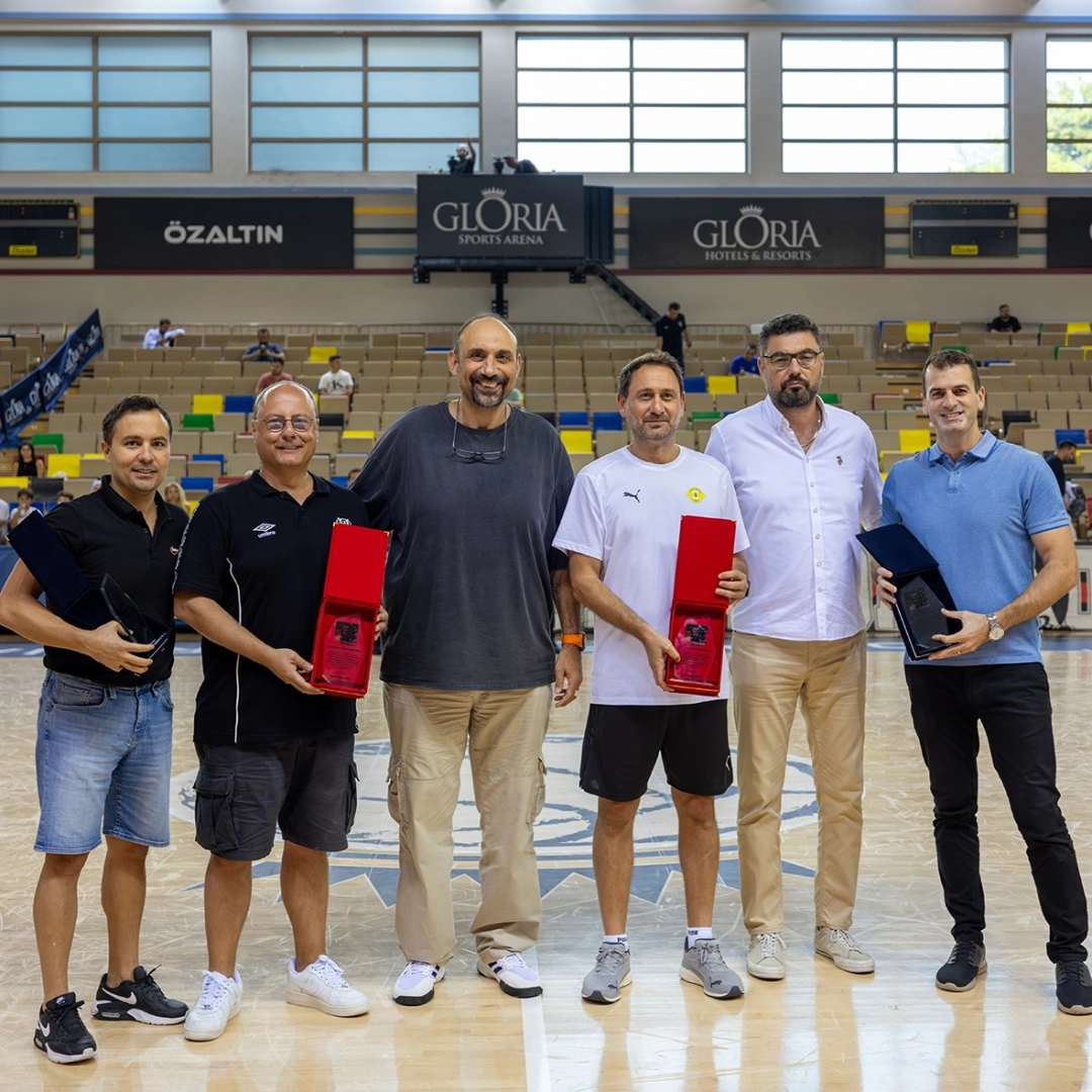 Namık Kemal KILINÇ / SERİK (Antalya), (DHA)- TÜRK basketbolunun simge isimlerinden İsmet Badem anısına, vefat yıl dönümü olan 6 Eylül’de Gloria Sports Arena’da iki özel karşılaşma gerçekleşti. Organizasyonda Trabzonspor – Lokomotiv Kuban ve Beşiktaş Gain – Esenler Erokspor basketbol takımları parkeye çıktı.Yaklaşık 10 yıldır Smart Casual Event iş birliğiyle Gloria Sports Arena’da düzenlenen basketbol turnuvaları, bu yıl İsmet Badem’in hatırasına adanan özel maçlarla devam etti. Bu anlamlı etkinlik, Türk basketboluna gönül vermiş efsanenin adını yaşatmayı amaçlıyor.06 Eylül 2025 Cumartesi oynanan maçlar öncesinde İsmet Badem Ailesi katılan takımlara ve organizasyonu sağlayan firmalara birer şilt takdim etti.(FOTOĞRAFLI)