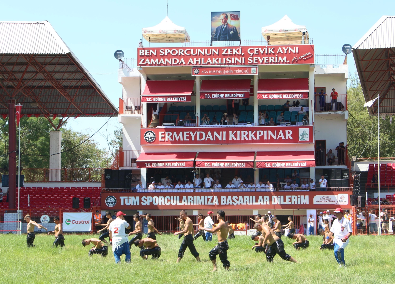Umut IŞIK-Batuhan SEVER/EDİRNE, (DHA)- EDİRNE'de bu yıl 664'üncüsü gerçekleştirilen Tarihi Kırkpınar Yağlı Güreşleri, bugün başladı.UNESCO İnsanlığın Somut Olmayan Kültürel Mirası Listesi'nde bulunan, bu yıl 664'üncüsü gerçekleştirilen Tarihi Kırkpınar Yağlı Güreşleri, bugün start aldı. Sarayiçi Er Meydanı'nda gerçekleştirilen organizasyonda, minik-1 boyda 36, minik-2 boyda ise 37 pehlivan kol bağladı. Organizasyonda gün boyu, başaltı boyu da dahil olmak üzere toplam 14 boyun 13'ünde tek tur güreşler yapılacak. Büyük organizasyonun açılışı ise saat 18.30'da yine Sarayiçi Er Meydanı'nda gerçekleştirilecek. Öte yandan bu yıl 826 pehlivanın lig usulü sistemle katılmaya hak kazandığı Kırkpınar Yağlı Güreşleri'ne ise 762 pehlivan kayıt yaptırdı.(FOTOĞRAFLI)