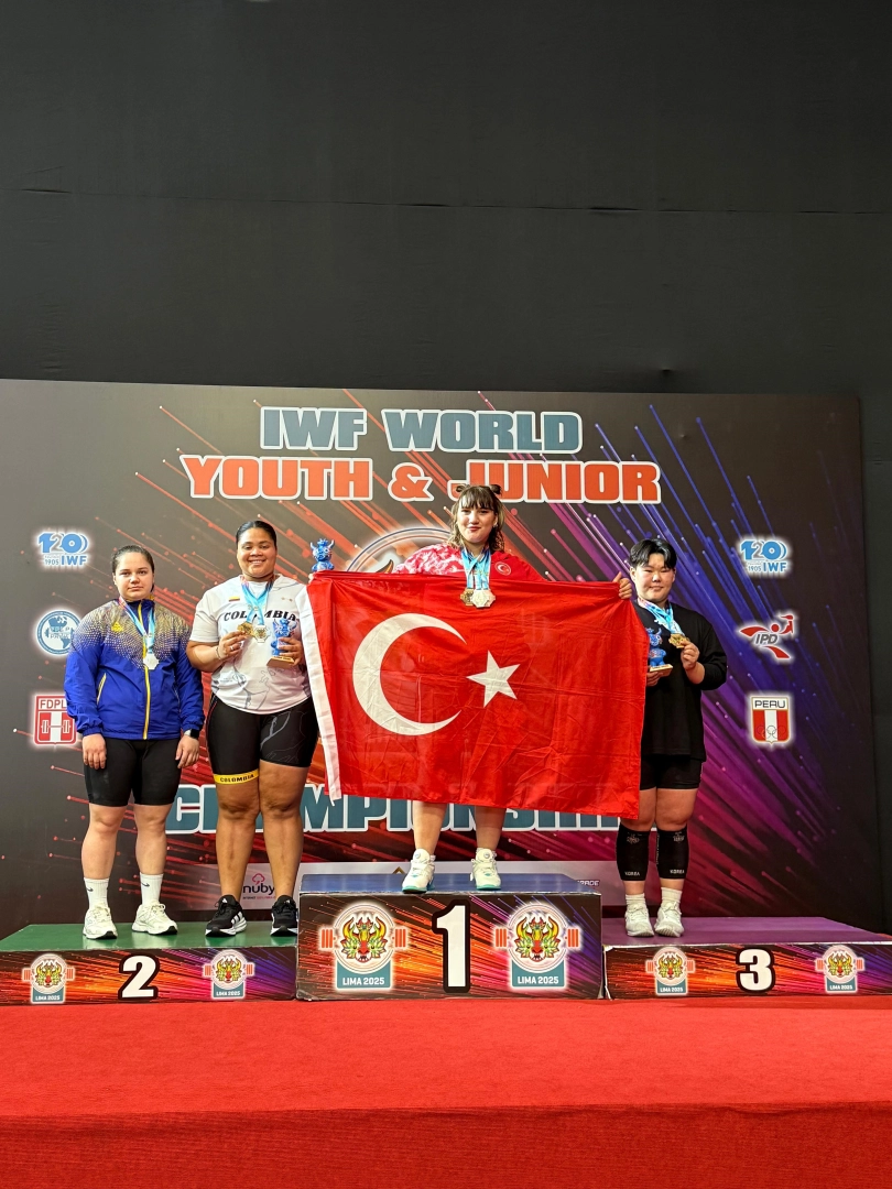 İSTANBUL, (DHA)- MİLLİ halterci Fatmagül Çevik, genç kadınlar 87 kiloda toplamda elde ettiği 245 kiloluk dereceyle dünya şampiyonu oldu. Yıldızlar ve Gençler Dünya Halter Şampiyonası Peru’nun başkenti Lima’da sona erdi. Milli sporcularımız Dünya Şampiyonası'nda 2 altın, 4 gümüş ve 2 bronz olmak üzere toplam 8 madalya kazandı. 62 ülkeden 265 erkek 265 kadın olmak üzere toplam 530 sporcunun katılımı ile gerçekleşen organizasyonun son gününde genç kadınlar 87 kiloda podyuma çıkan Milli sporcumuz Fatmagül Çevik, toplamda elde ettiği 245 kiloluk derecesiyle altın madalya kazanarak dünya şampiyonu oldu ve İstiklal Marşımızı Lima’da okuttu. Milli sporcumuz koparmada 110 kilo ile gümüş madalya kazanırken silkme müsabakasında elde ettiği 135 kilo ile bronz madalyanın sahibi oldu. Sporcumuza madalyasını Pursaklar Belediye Başkanı Ertuğrul Çetin takdim etti.Türkiye Halter Federasyonu Başkanı Talat Ünlü dünya şampiyonu olan sporcumuzu, antrenörlerimizi ve sporcumuzun kulübünü tebrik etti.