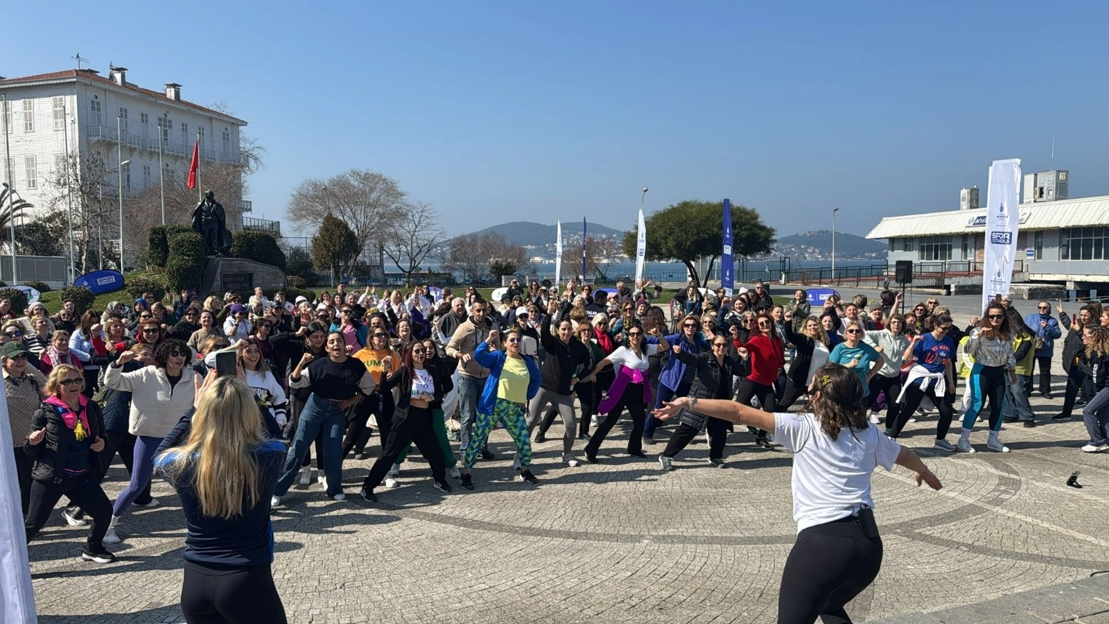 İSTANBUL, (DHA) - SPOR İstanbul, 8 Mart Dünya Emekçi Kadınlar Günü’nü Büyükada’da yaklaşık 500 kişinin katıldığı etkinlikle kutladı. Kadınlar hem spor yaptı hem dans etti.İBB Hizmet ve İletişim Grubu iştiraki Spor İstanbul organizasyonuyla 300 kadın, sabah saatlerinde Bostancı’daki Şehir Hatları iskelesinde buluştu. Kadınlar, vapurda egzersiz yaparak ve şarkılar eşliğinde danslar ederek Büyükada’ya gitti. Ada sakinlerinin de katılımıyla sayısı yaklaşık 500’e ulaşan kadınlar, Atatürk Meydanı’nda zumba ve aerobik yaptı.Spor İstanbul açık alan eğitmenlerinin liderliğinde dört saat süren ve renkli görüntülerin ortaya çıktığı etkinliğe katılan kadınlar, 8 Mart’ta keyifli bir gün geçirdi.40 TESİSTE YÜZME, TENİS, OKÇULUK YARIŞLARISpor İstanbul, 8 Mart’ı ayrıca 40 tesisinde düzenlediği çeşitli sportif etkinliklerle de kutladı. Tesislerde yüzlerce kişinin katılımıyla yüzme yarışları, tenis turnuvaları, aero dans dersleri, voleybol maçları ve okçuluk müsabakaları yapıldı.